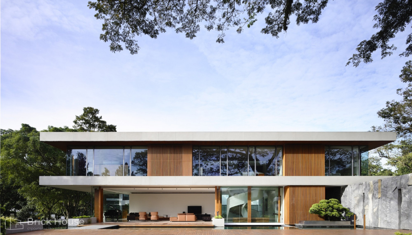 • Дома с плоской крышей характерны для стиля хай-тек. Эксплуатируемую плоскую кровлю можно использовать как террасу