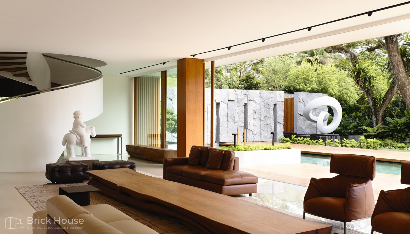 • Панорамные окна позволяют максимально использовать естественное освещение в доме. Они создают светлое и просторное ощущение внутри помещений, позволяют проникать большому количеству дневного света и снижают зависимость от искусственного освещения. Это помогает создать более комфортную и приятную атмосферу