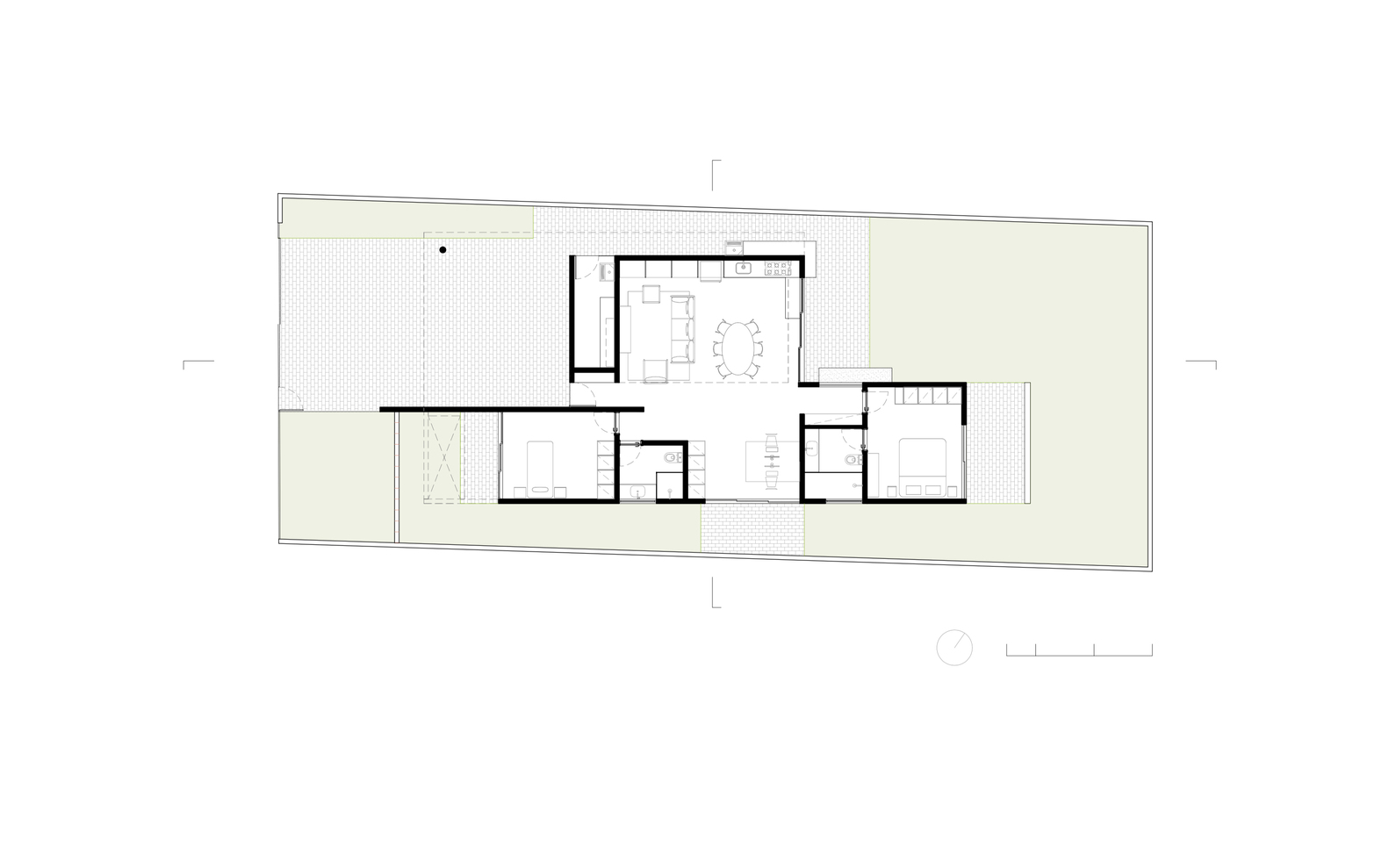 Этот дом имеет один этаж — это позволят быстрее и проще его построить.