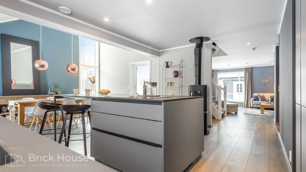 Панорамные окна украшают фасад и визуально расширяют границы комнат. Благодаря панорамным окнам в вашем доме всегда будет много дневного света.