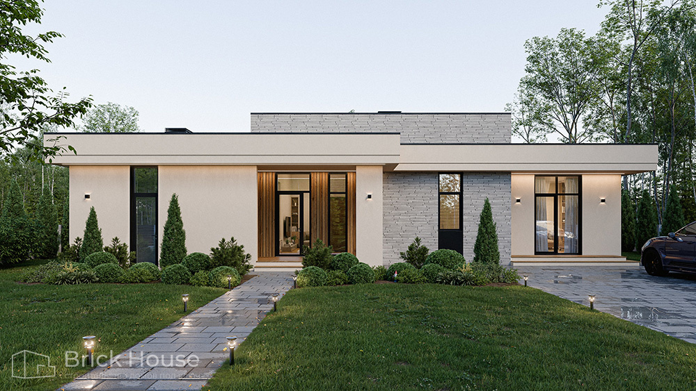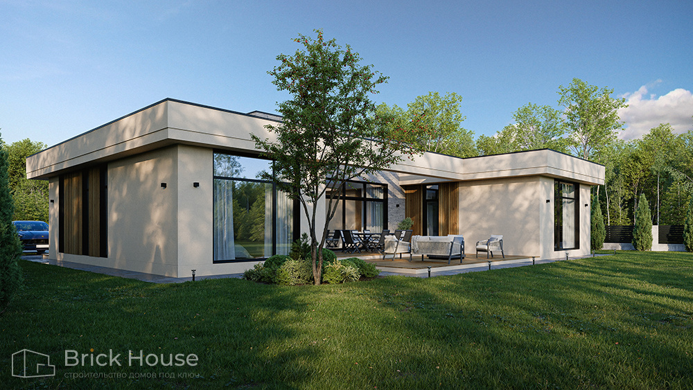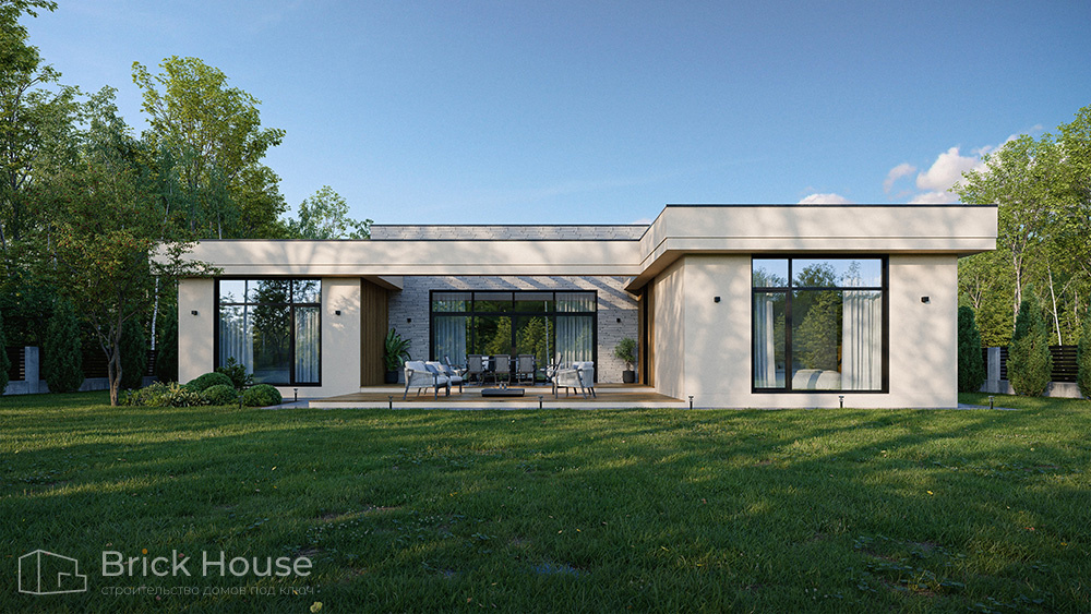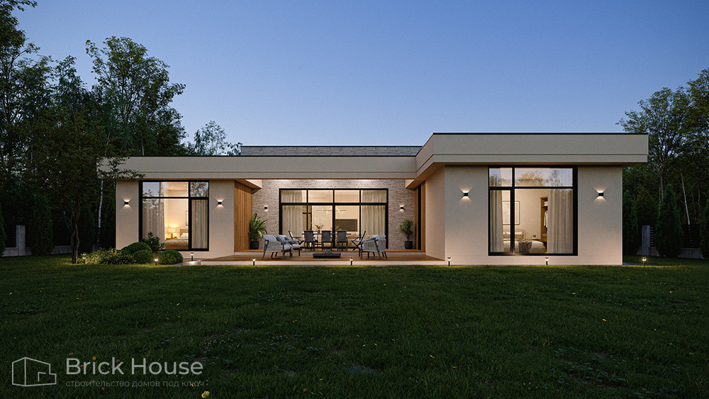 Этот дом имеет один этаж — это позволят быстрее и проще его построить.