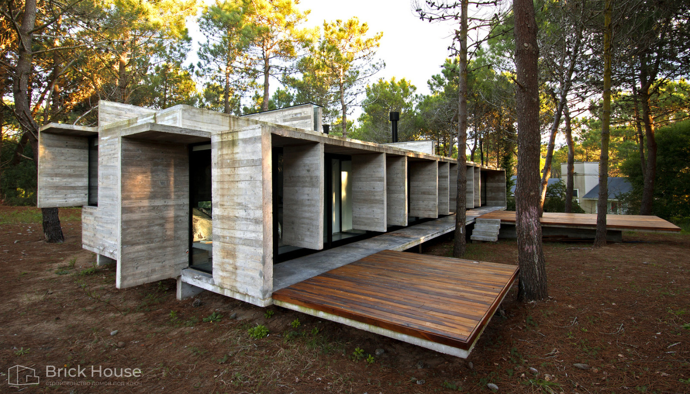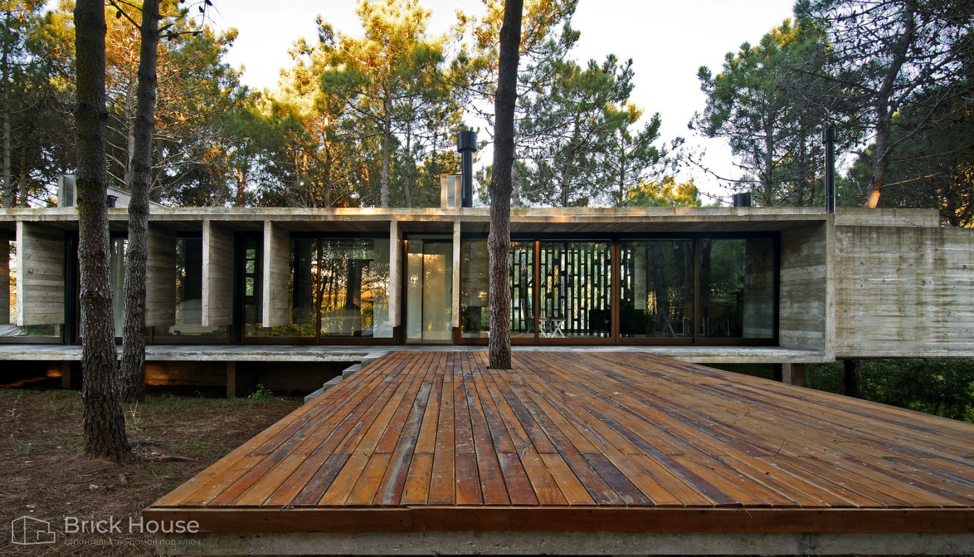 Дома с плоской крышей характерны для стиля хай-тек. Эксплуатируемую плоскую кровлю можно использовать как террасу.