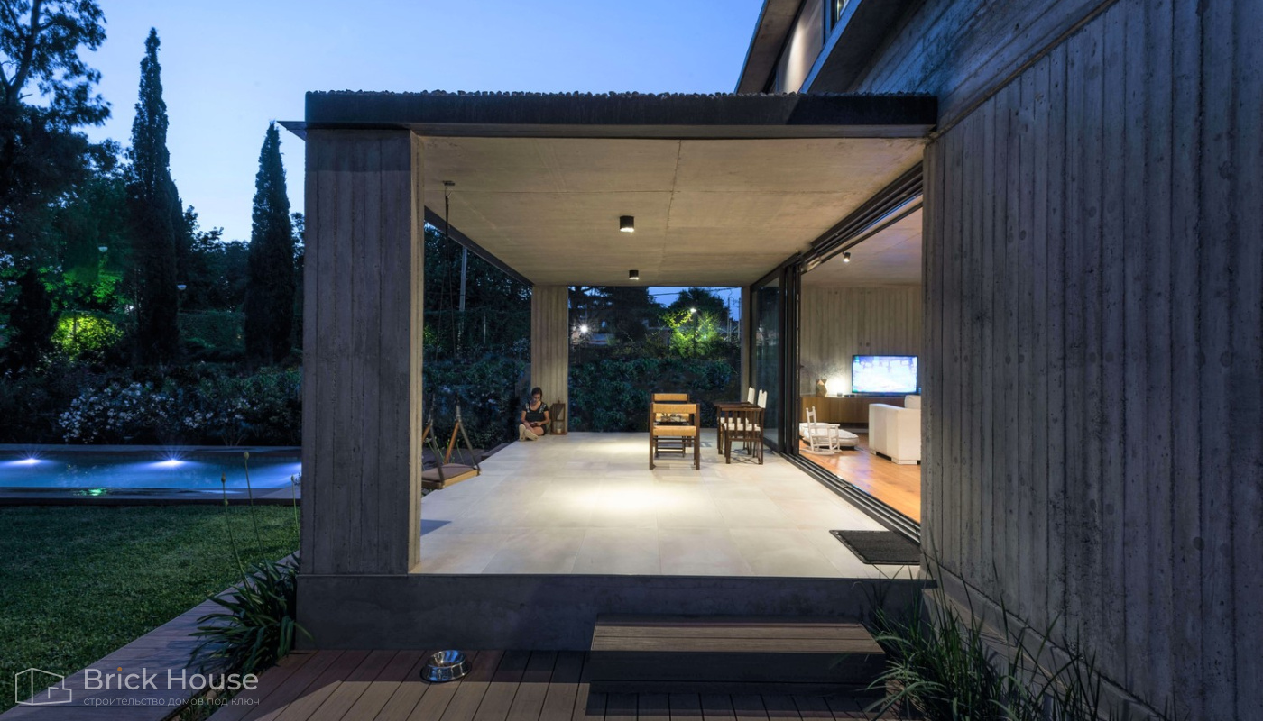 Дома с плоской крышей характерны для стиля хай-тек. Эксплуатируемую плоскую кровлю можно использовать как террасу.