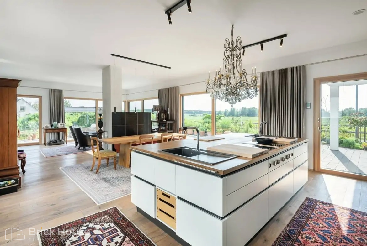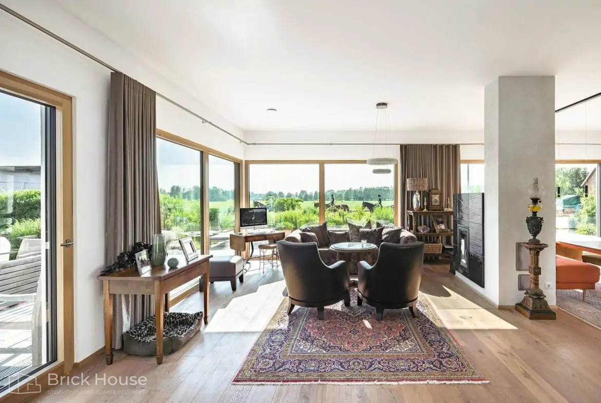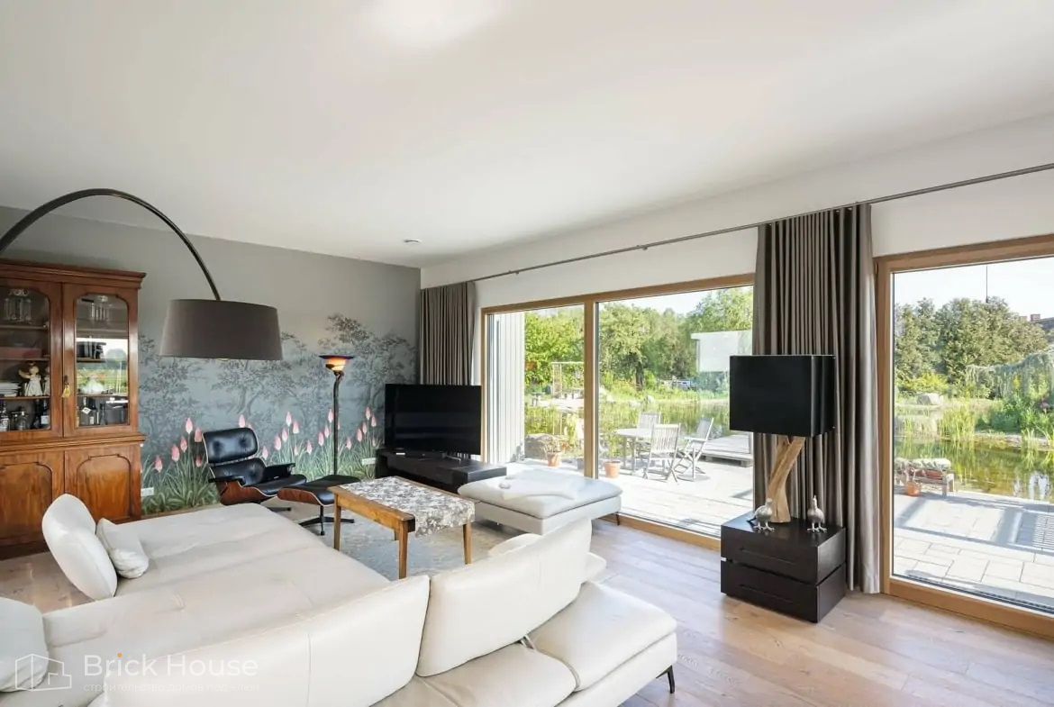 Панорамные окна украшают фасад и визуально расширяют границы комнат. Благодаря панорамным окнам в вашем доме всегда будет много дневного света.
