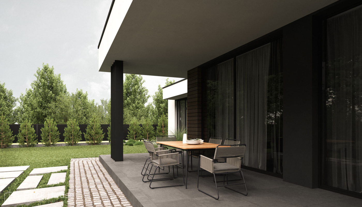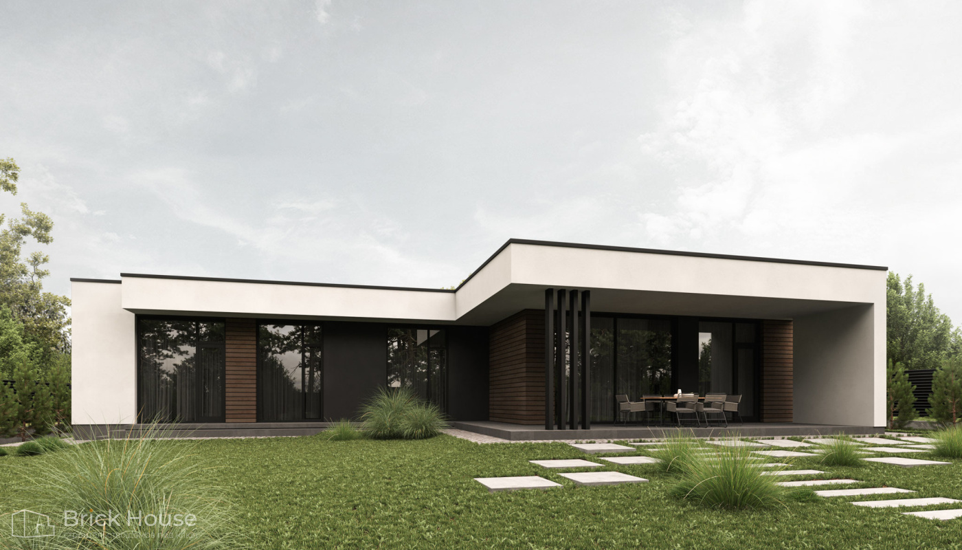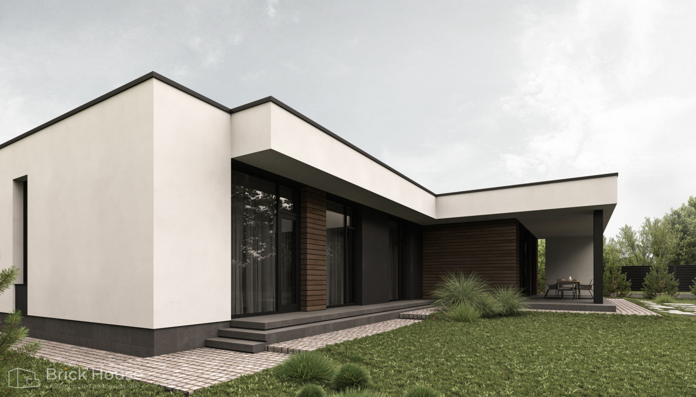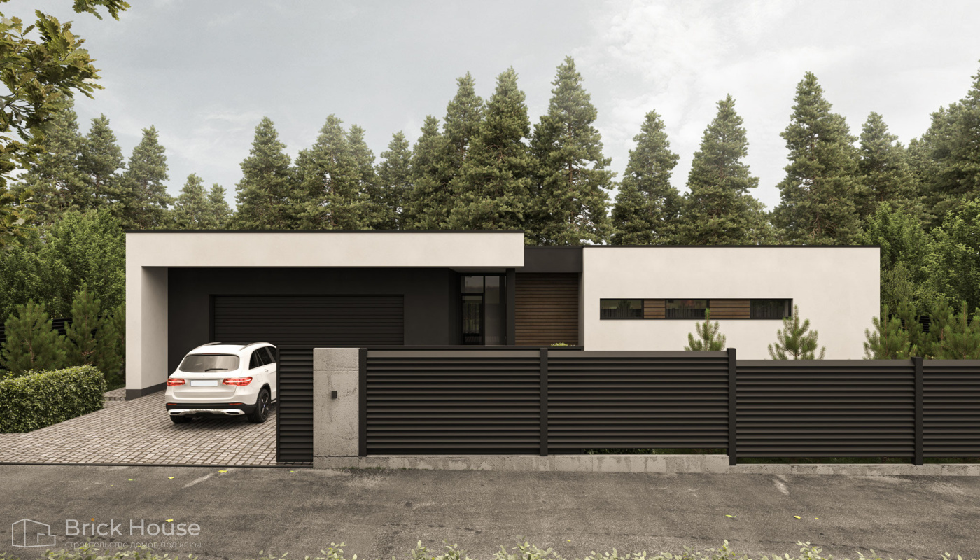 Этот дом имеет один этаж — это позволят быстрее и проще его построить.
