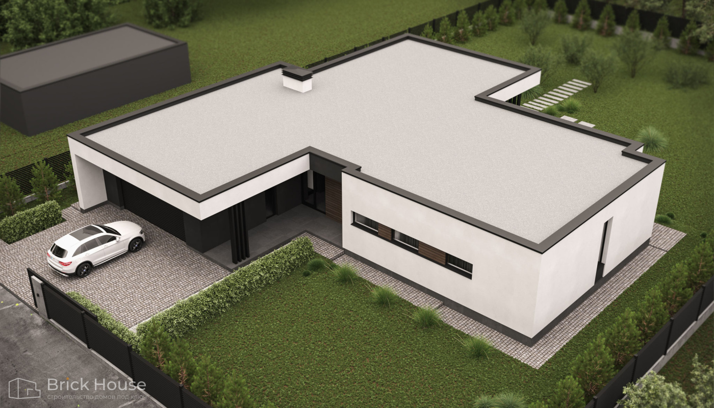 Дома с плоской крышей характерны для стиля хай-тек. Эксплуатируемую плоскую кровлю можно использовать как террасу.