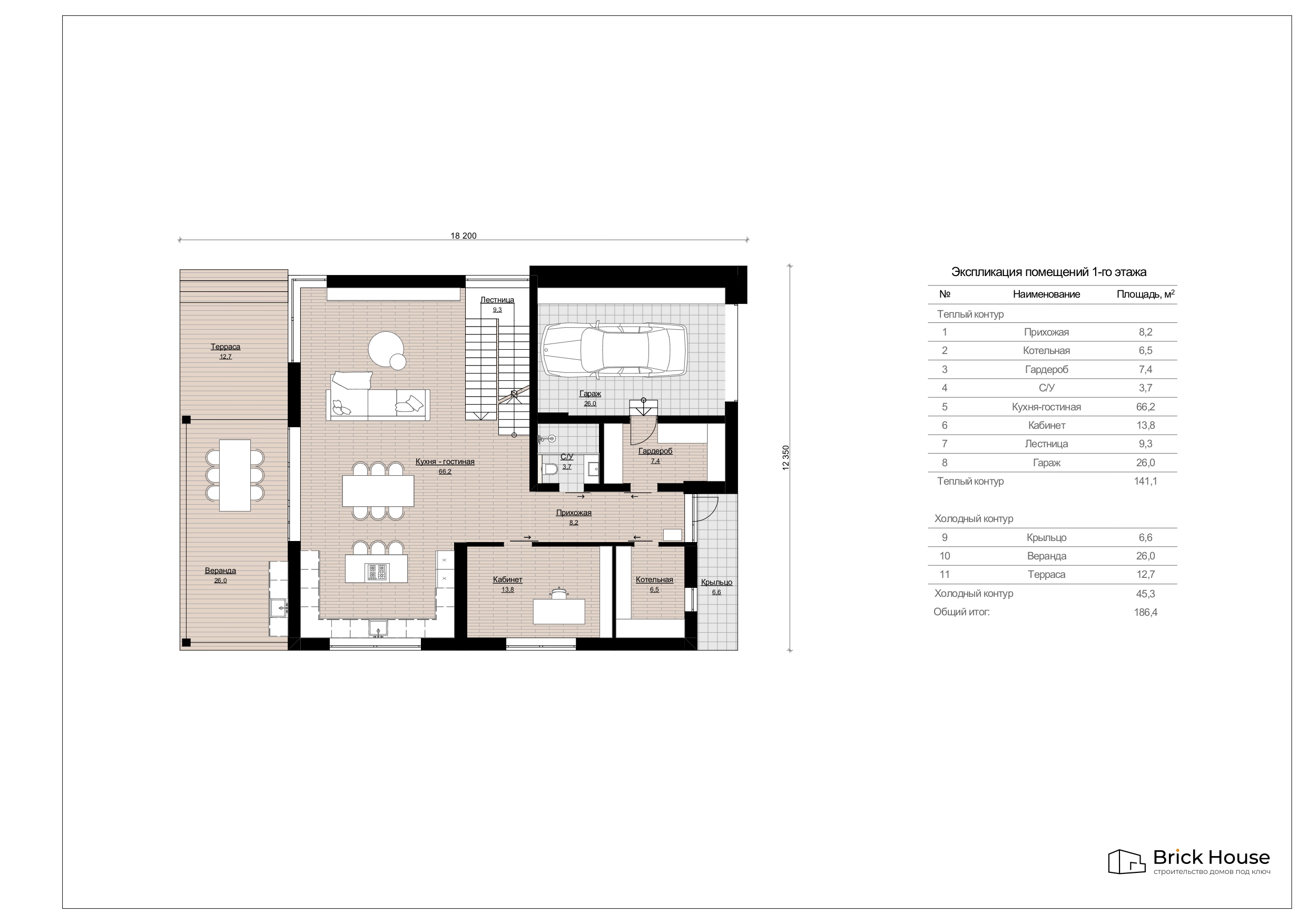 В доме большой площади можно реализовать любые идеи для комфортной и красивой жизни. В таком доме будет удобно жить даже семье, состоящей из нескольких поколений.