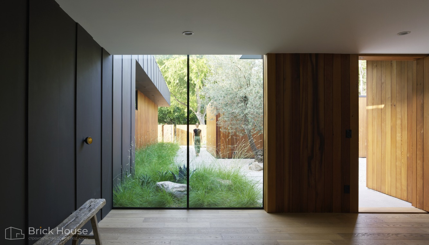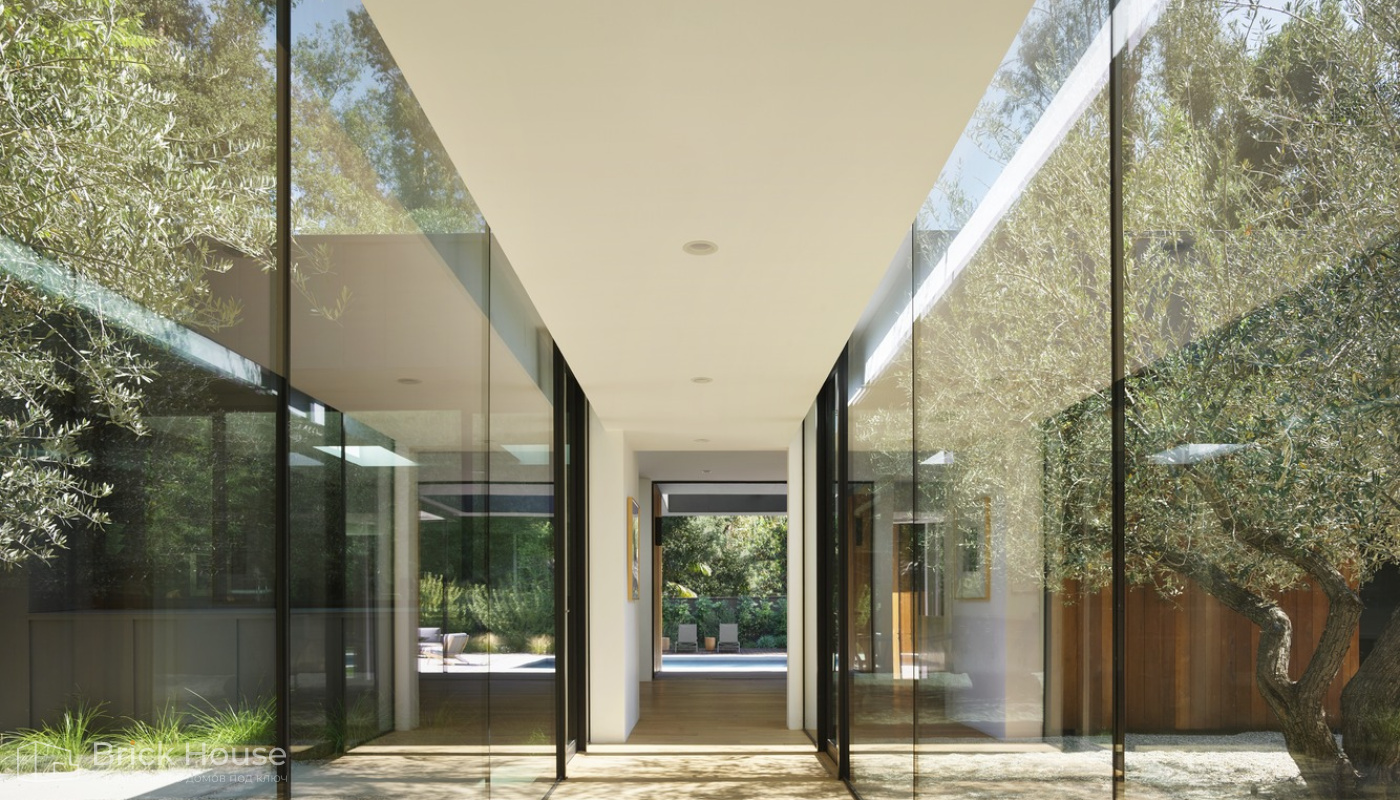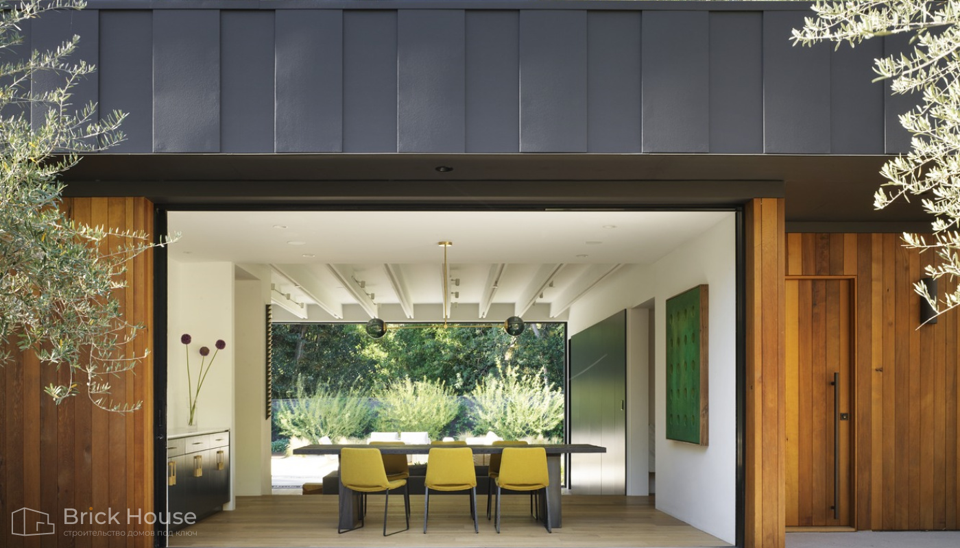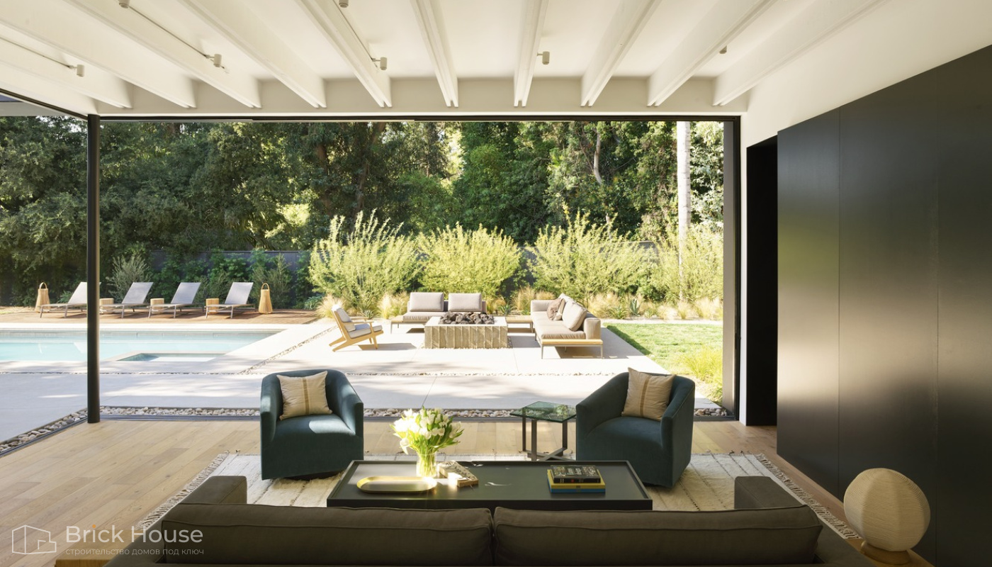 • Панорамные окна позволяют максимально использовать естественное освещение в доме. Они создают светлое и просторное ощущение внутри помещений, позволяют проникать большому количеству дневного света и снижают зависимость от искусственного освещения. Это помогает создать более комфортную и приятную атмосферу