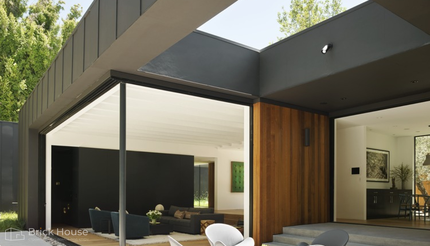 • Дома с плоской крышей характерны для стиля хай-тек. Эксплуатируемую плоскую кровлю можно использовать как террасу