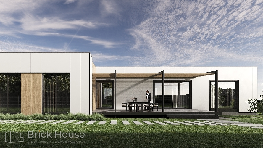Этот дом имеет один этаж — это позволят быстрее и проще его построить.