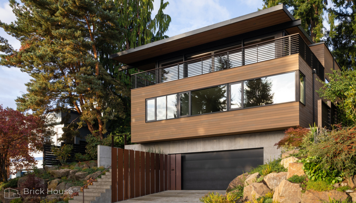 • Дома с плоской крышей характерны для стиля хай-тек. Эксплуатируемую плоскую кровлю можно использовать как террасу
