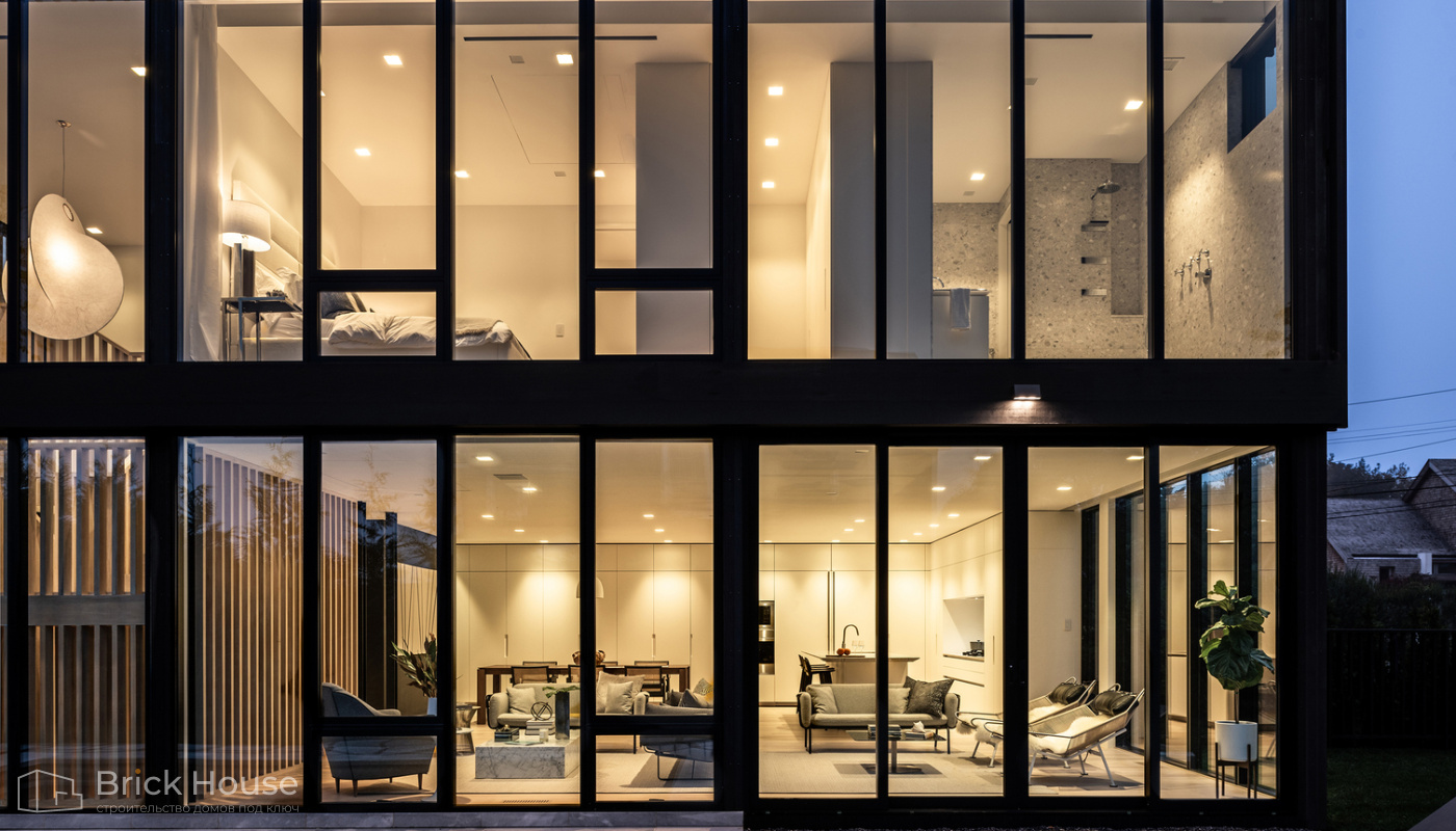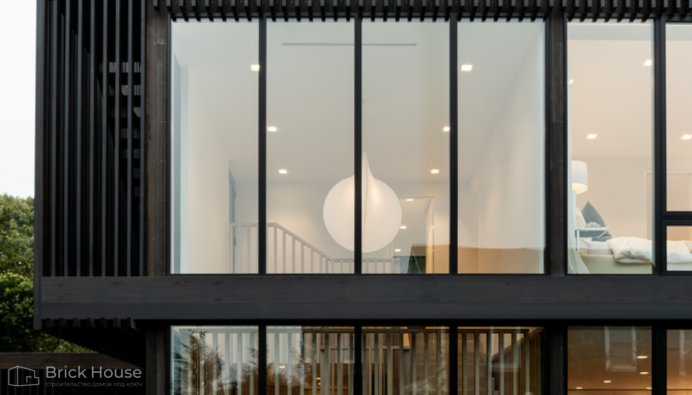 Панорамные окна украшают фасад и визуально расширяют границы комнат. Благодаря панорамным окнам в вашем доме всегда будет много дневного света.