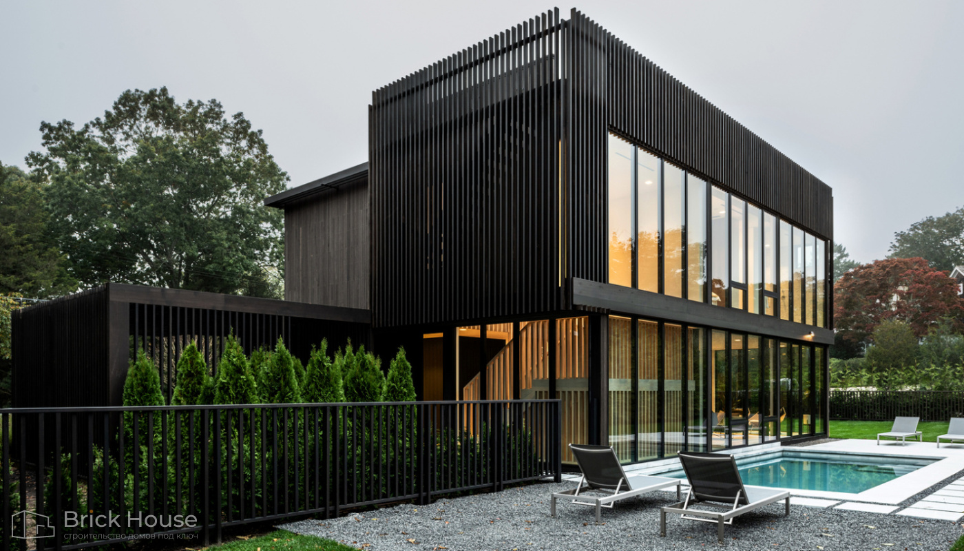 Дома в стиле хай-тек имеют плоскую крышу и большую площадь панорамного остекления. Хай-тек в загородной архитектуре набирает все большую популярность. Такие дома смотрятся дорого, современно и презентабельно.