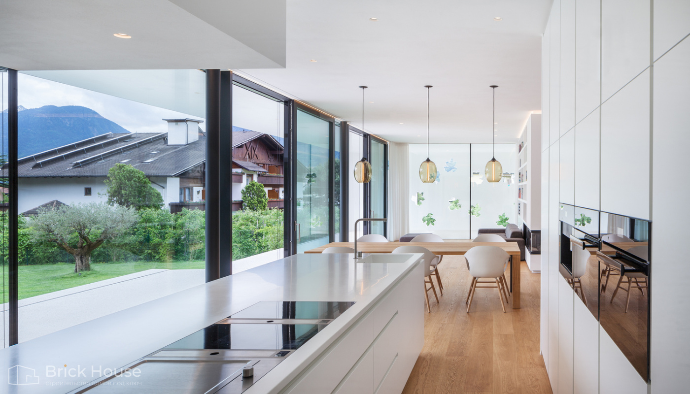 Панорамные окна позволяют максимально использовать естественное освещение в доме. Они создают светлое и просторное ощущение внутри помещений, позволяют проникать большому количеству дневного света и снижают зависимость от искусственного освещения. Это помогает создать более комфортную и приятную атмосферу.