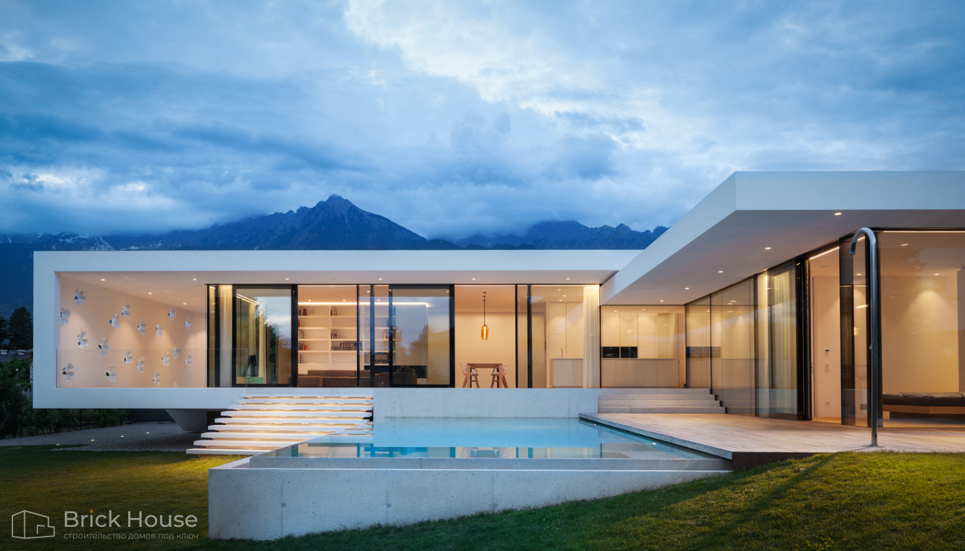 Этот дом имеет один этаж — это позволят быстрее и проще его построить.