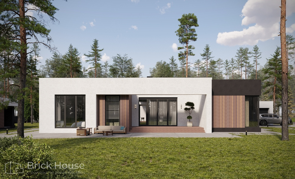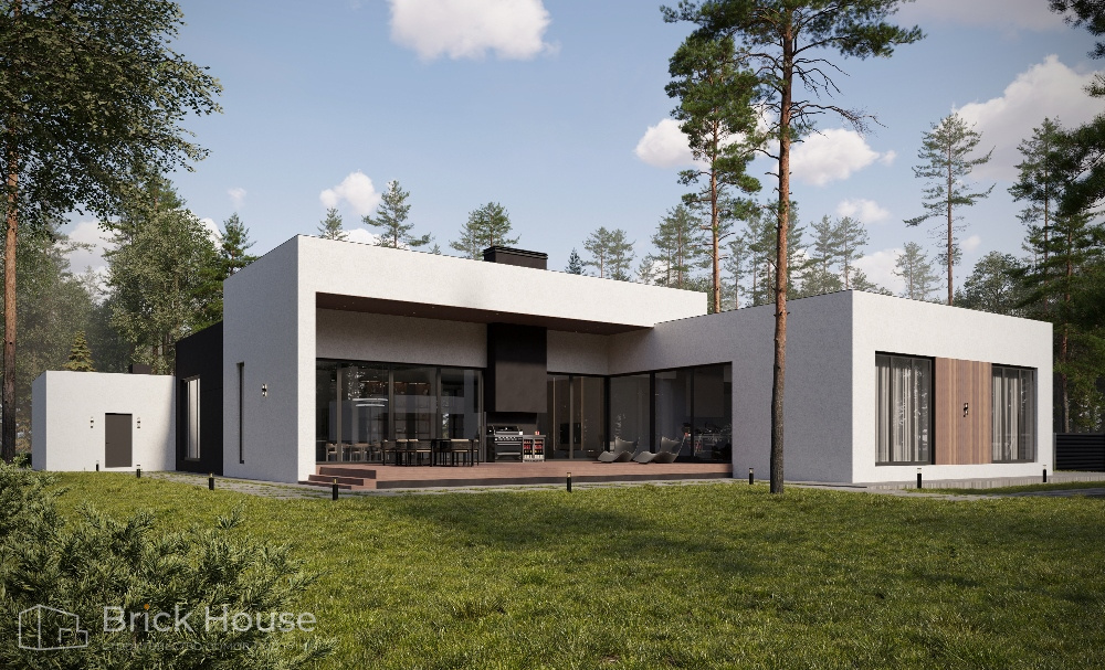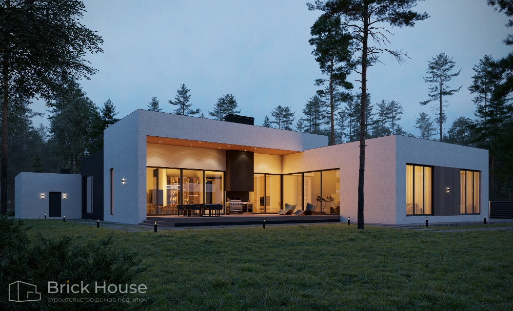 Этот дом имеет один этаж — это позволят быстрее и проще его построить.