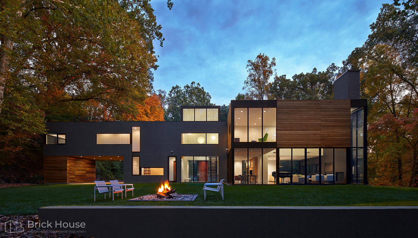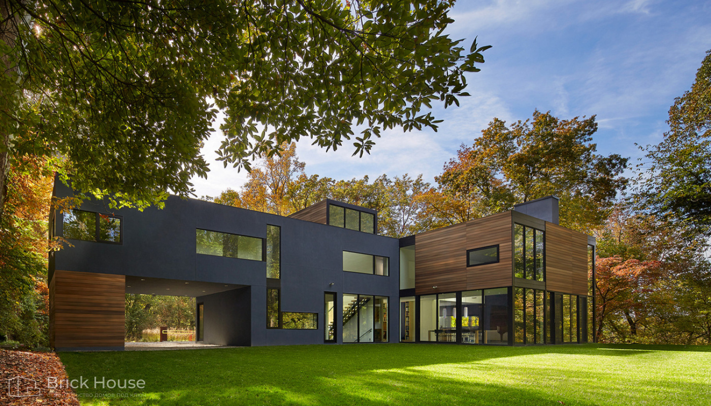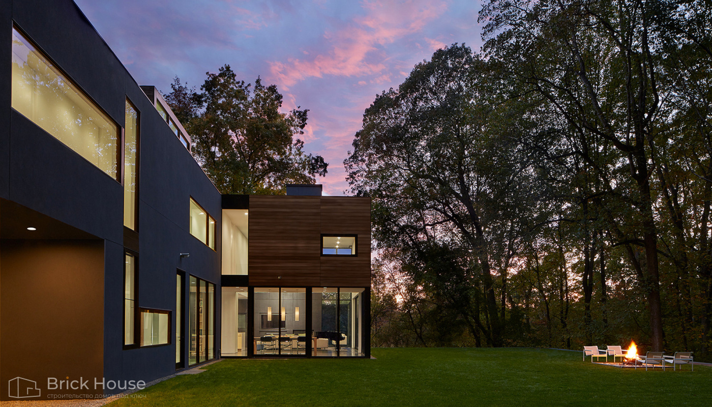 Дома с плоской крышей характерны для стиля хай-тек. Эксплуатируемую плоскую кровлю можно использовать как террасу.
