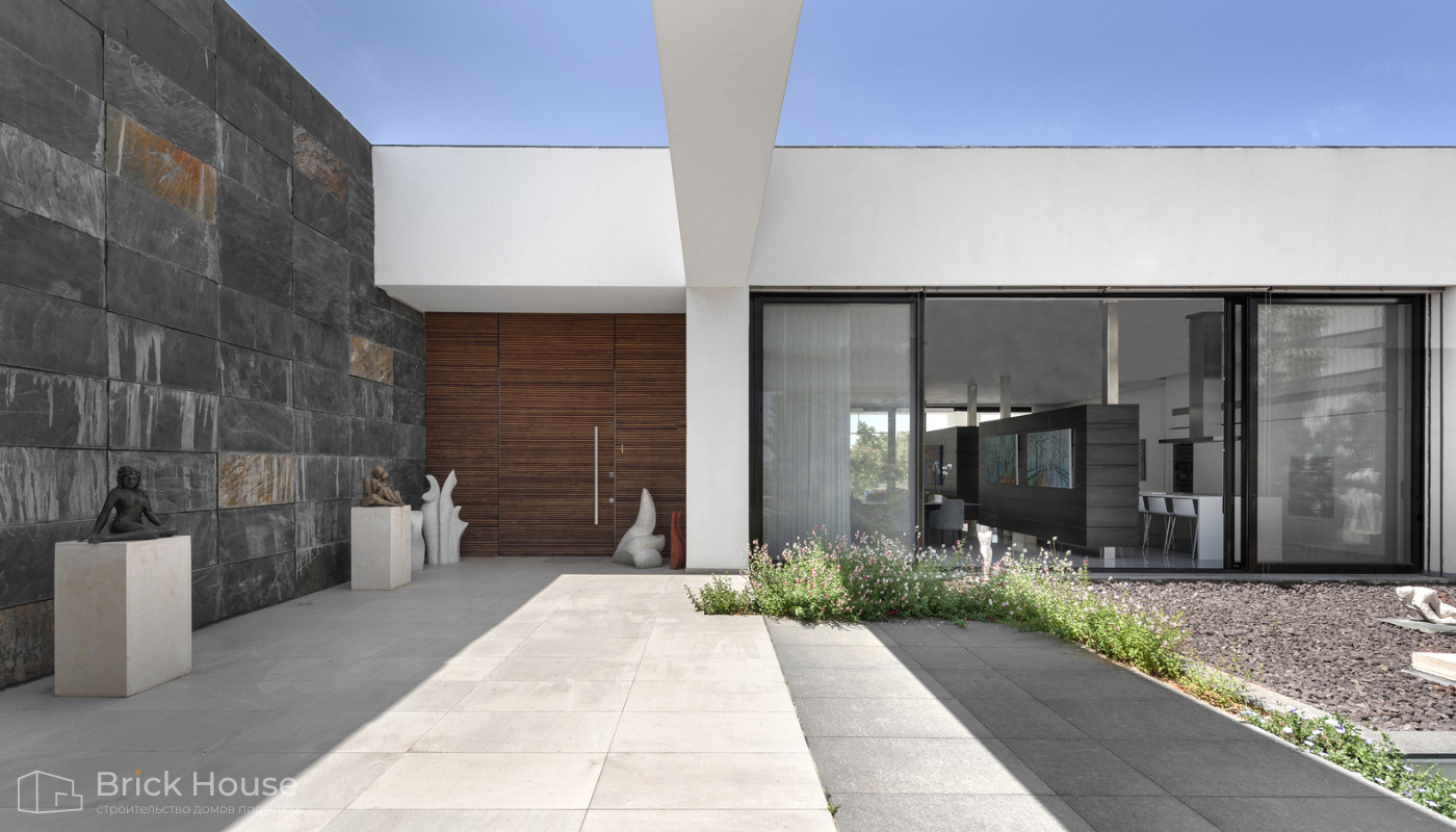 Этот дом имеет один этаж — это позволят быстрее и проще его построить.