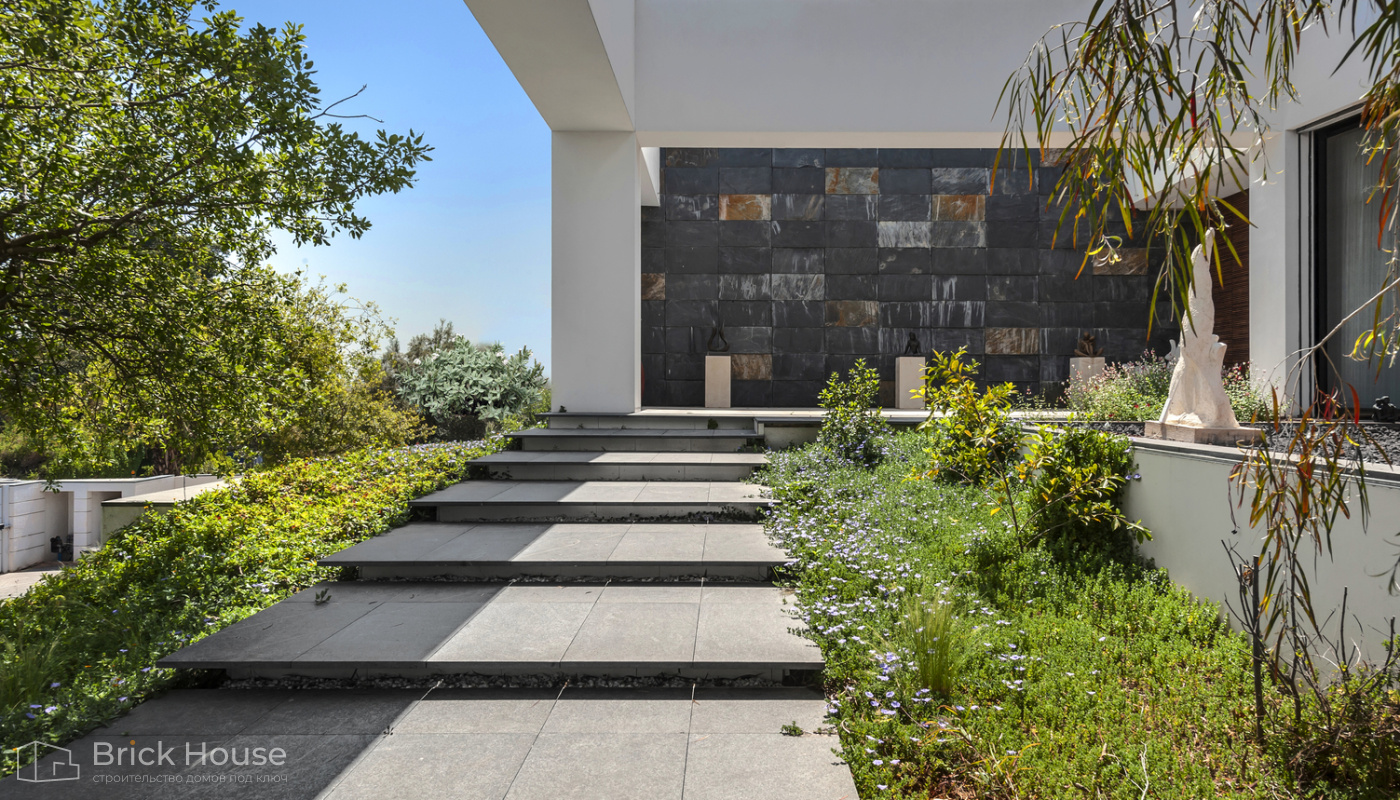 Дома с плоской крышей характерны для стиля хай-тек. Эксплуатируемую плоскую кровлю можно использовать как террасу.