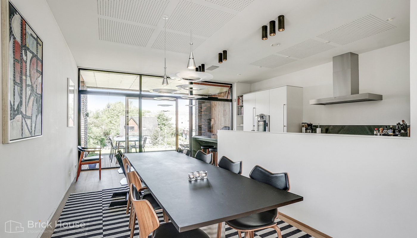 • Панорамные окна позволяют максимально использовать естественное освещение в доме. Они создают светлое и просторное ощущение внутри помещений, позволяют проникать большому количеству дневного света и снижают зависимость от искусственного освещения. Это помогает создать более комфортную и приятную атмосферу