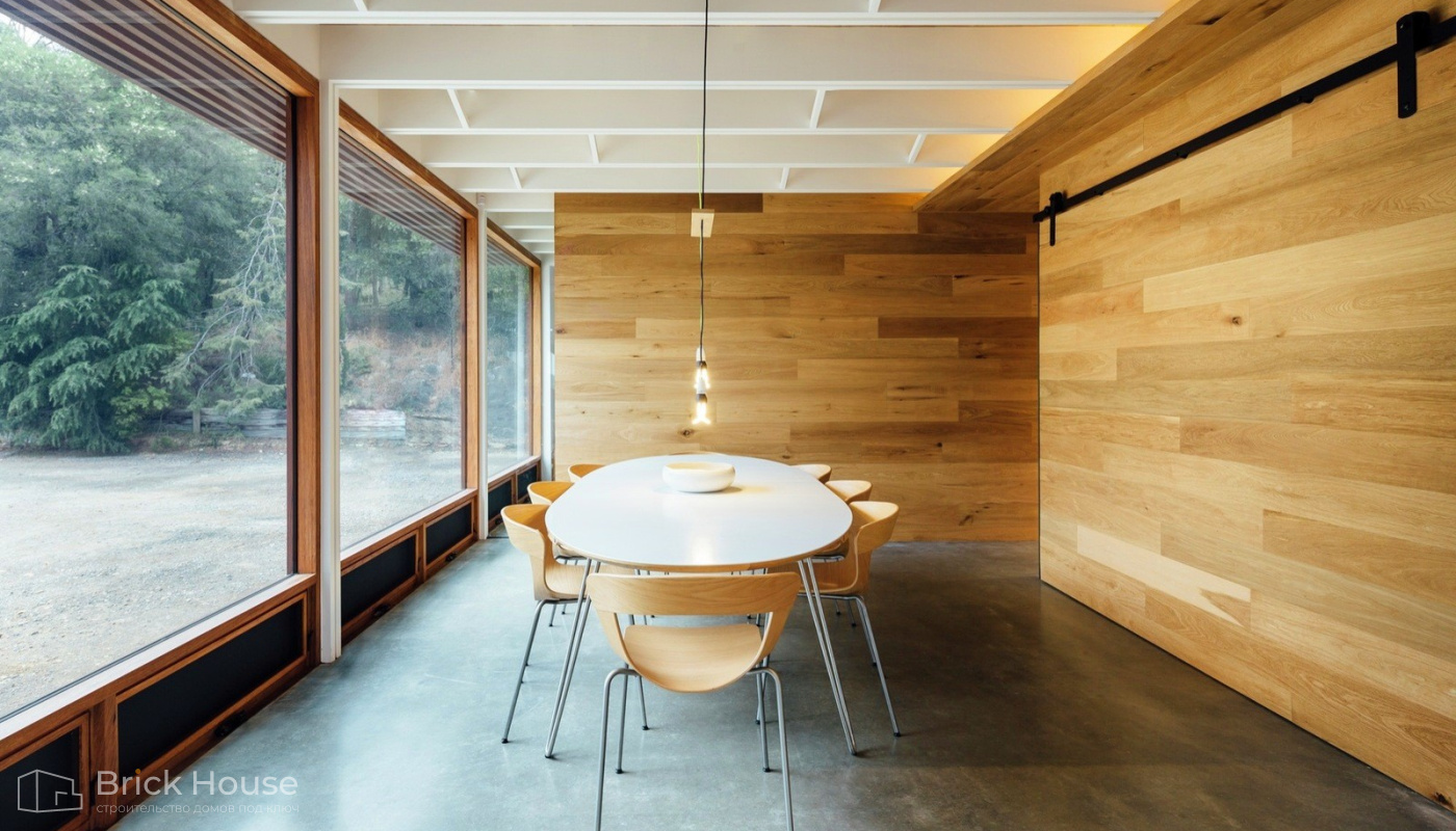 • Панорамные окна позволяют максимально использовать естественное освещение в доме. Они создают светлое и просторное ощущение внутри помещений, позволяют проникать большому количеству дневного света и снижают зависимость от искусственного освещения. Это помогает создать более комфортную и приятную атмосферу