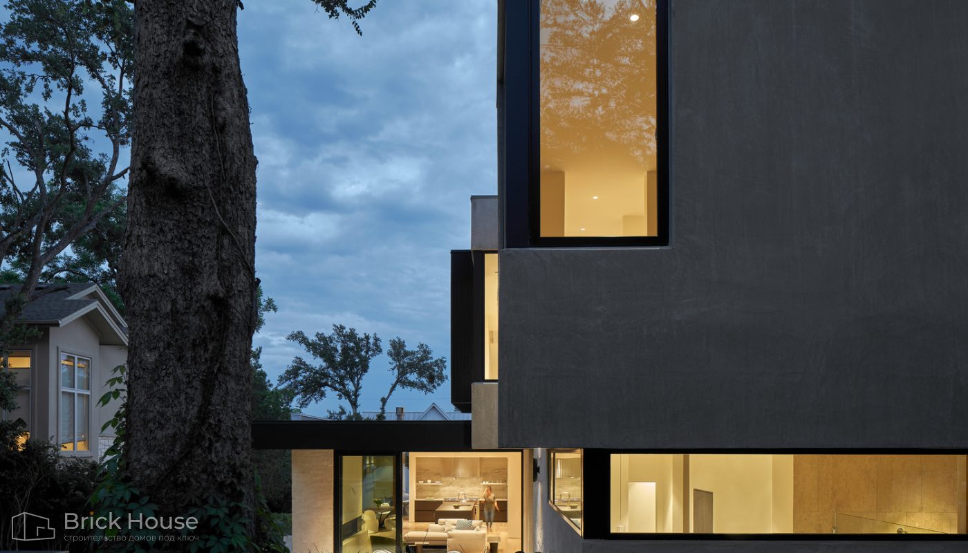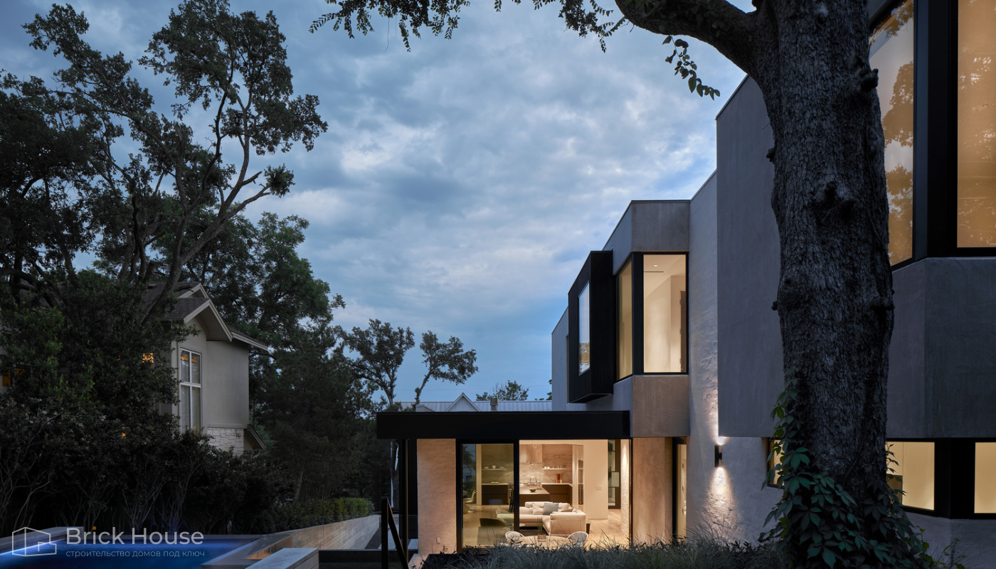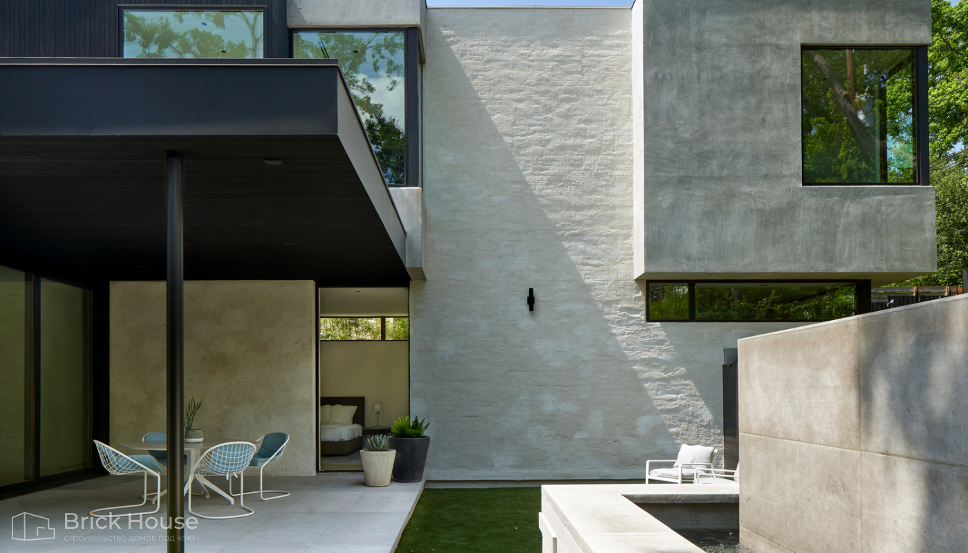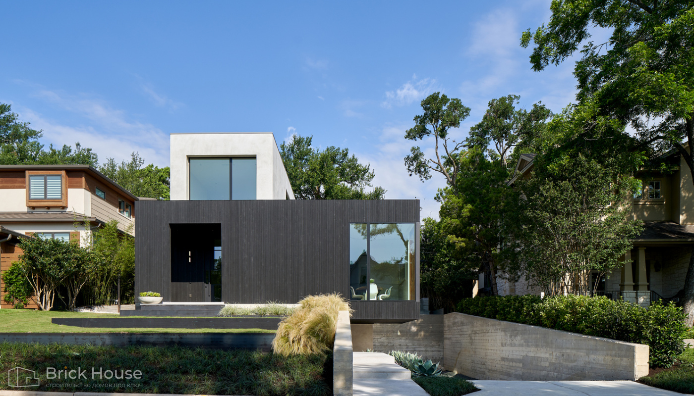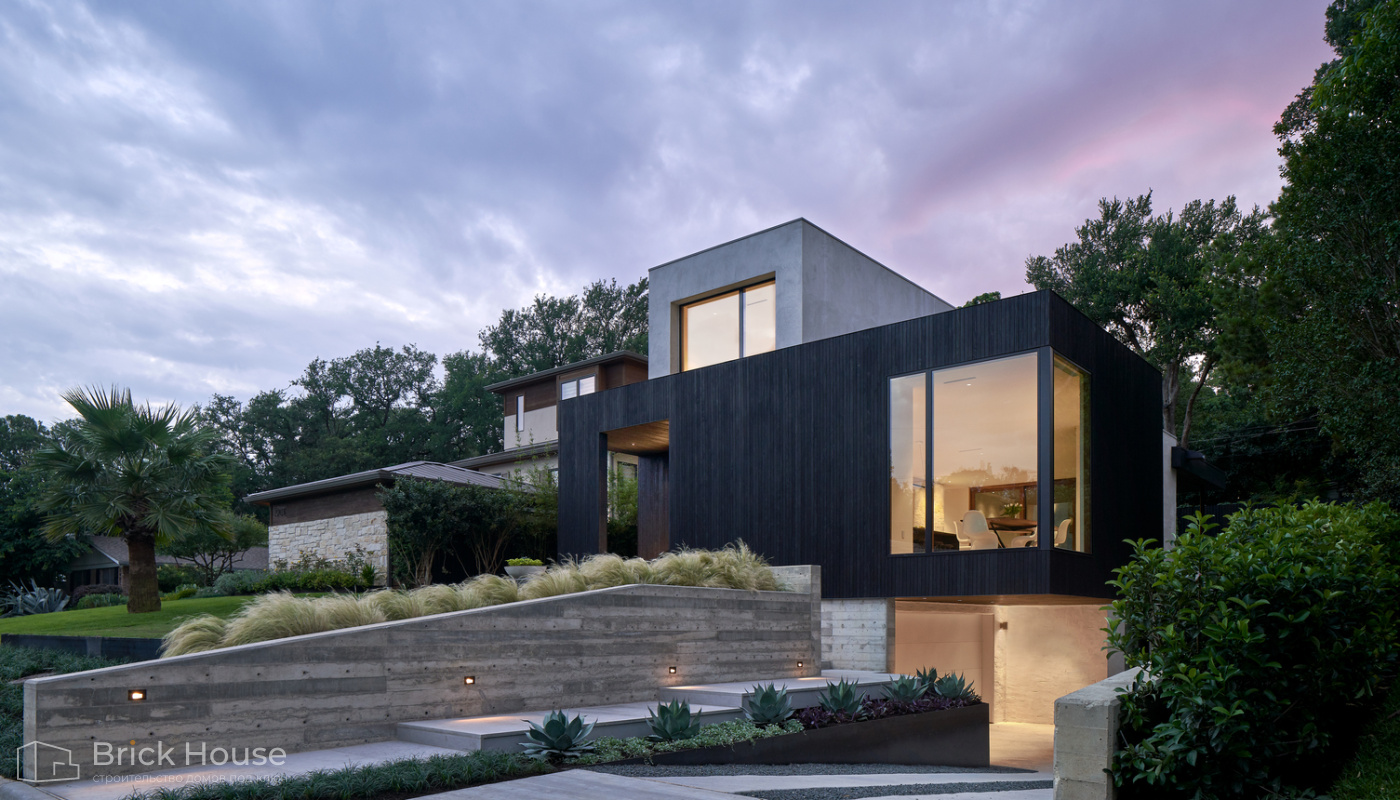 Дома с плоской крышей характерны для стиля хай-тек. Эксплуатируемую плоскую кровлю можно использовать как террасу.