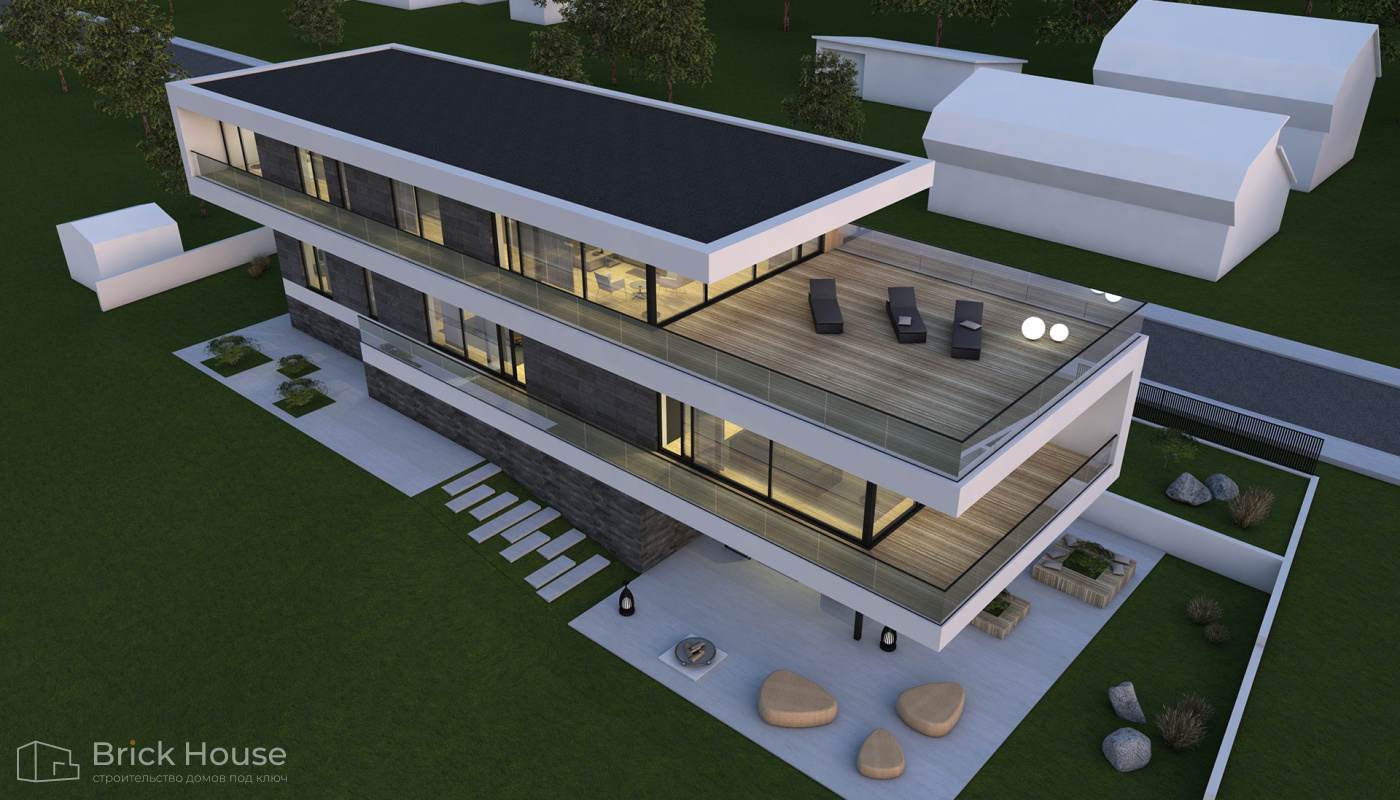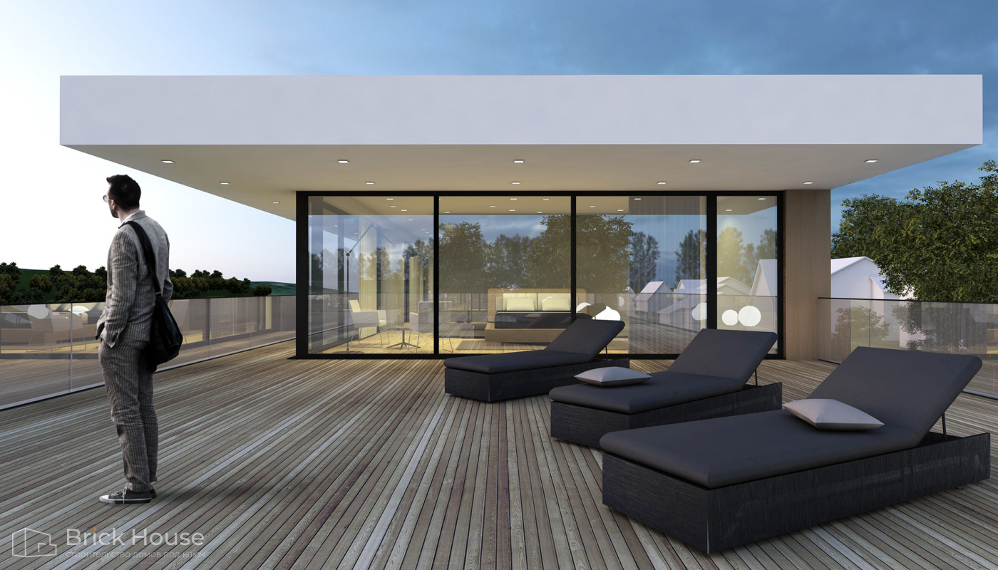 • Дома с плоской крышей характерны для стиля хай-тек. Эксплуатируемую плоскую кровлю можно использовать как террасу