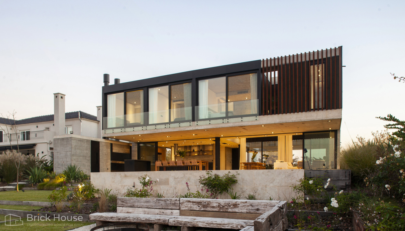 Современные дома отличает минимализм и практичные планировочные решения. Для них также характерны панорамное остекление и комбинированные фасады.