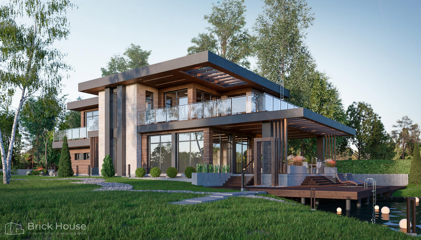 Дома в стиле хай-тек имеют плоскую крышу и большую площадь панорамного остекления. Хай-тек в загородной архитектуре набирает все большую популярность. Такие дома смотрятся дорого, современно и презентабельно.