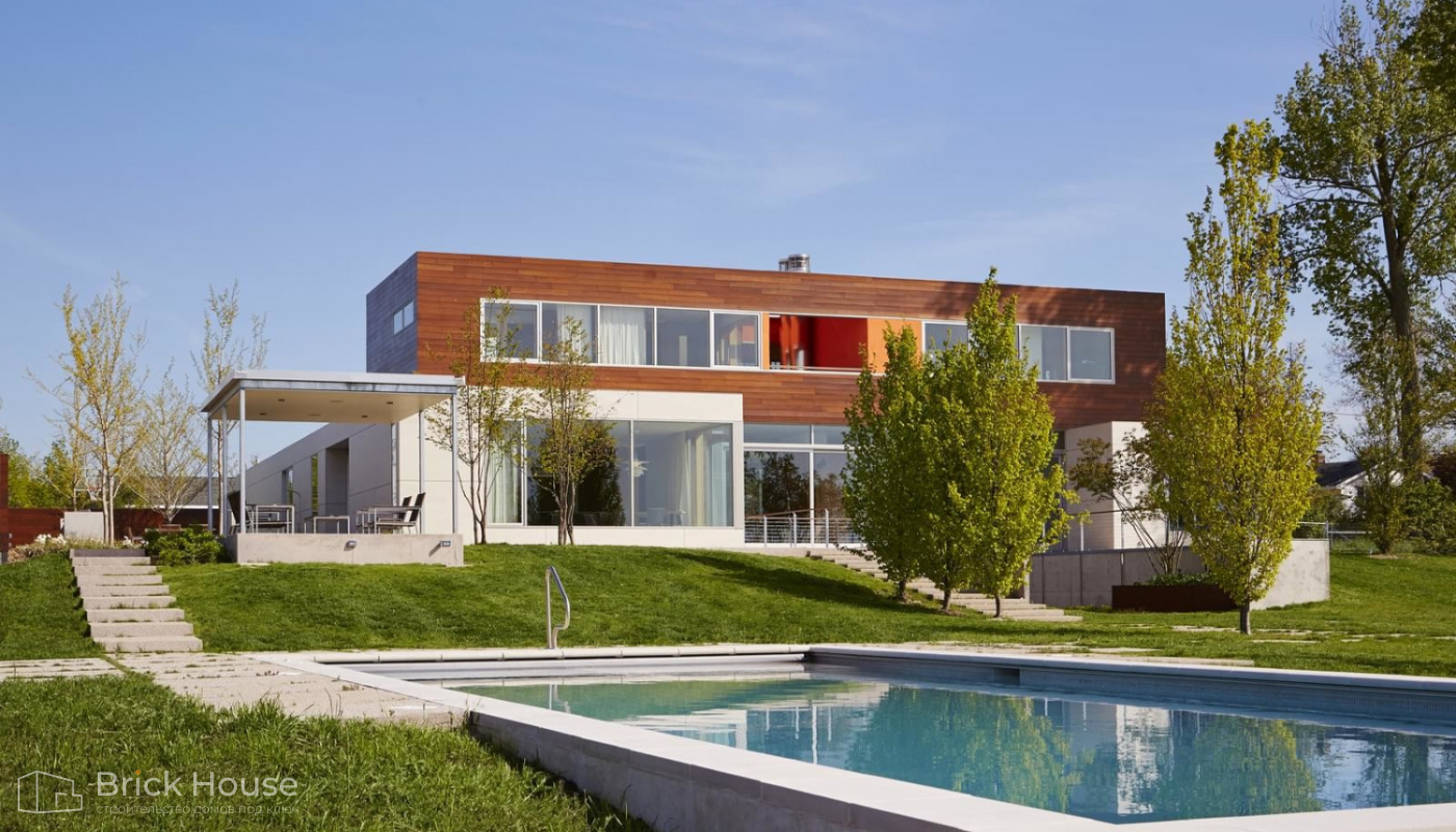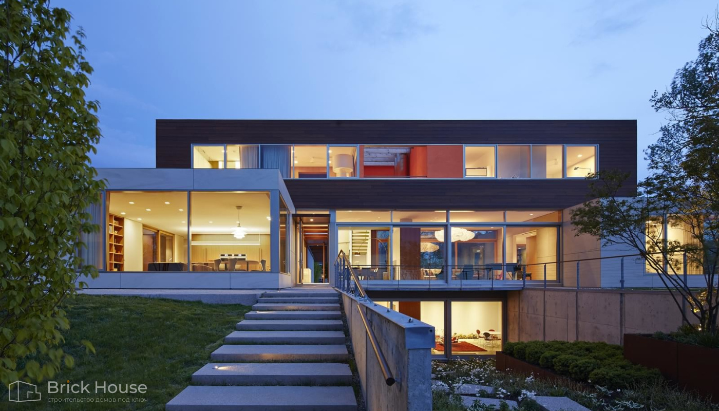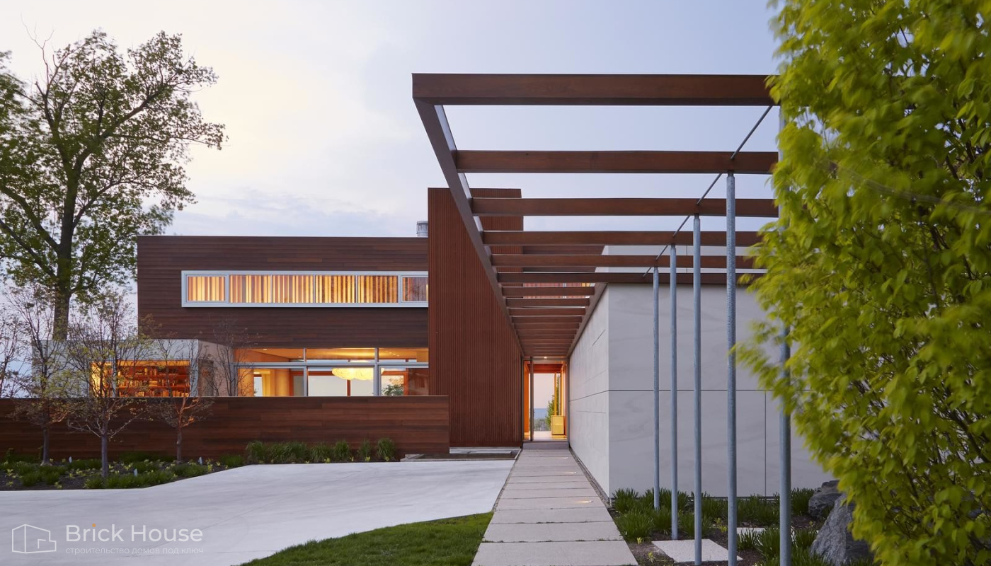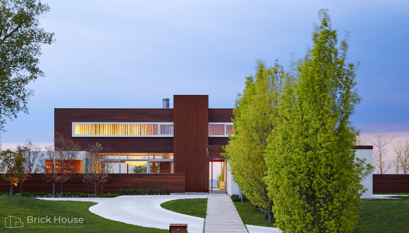 Дома с плоской крышей характерны для стиля хай-тек. Эксплуатируемую плоскую кровлю можно использовать как террасу.