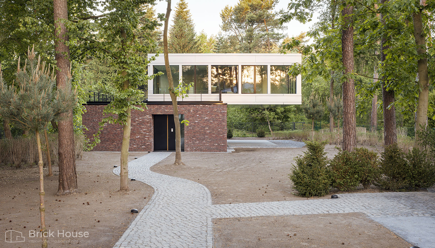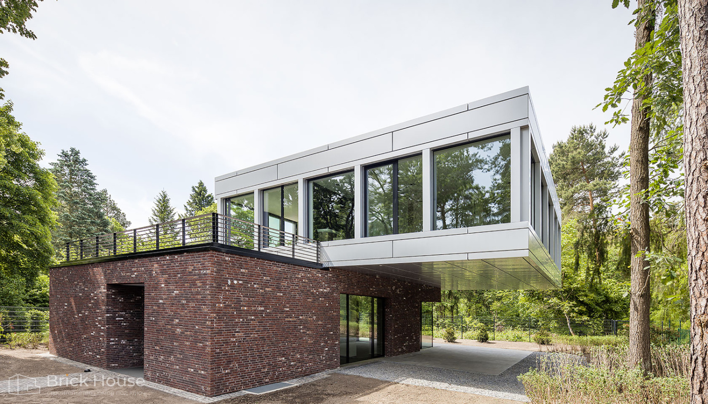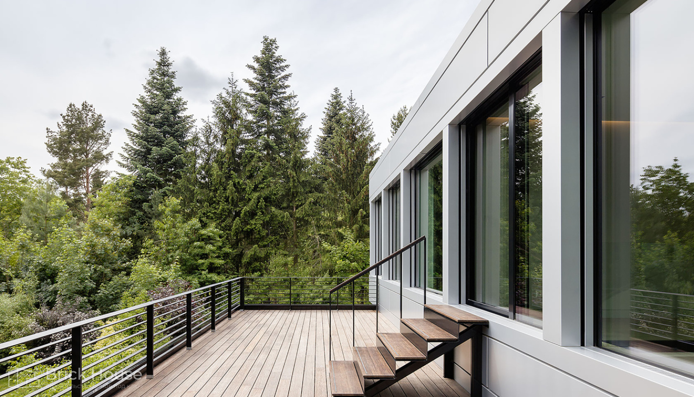 Дома с плоской крышей характерны для стиля хай-тек. Эксплуатируемую плоскую кровлю можно использовать как террасу.