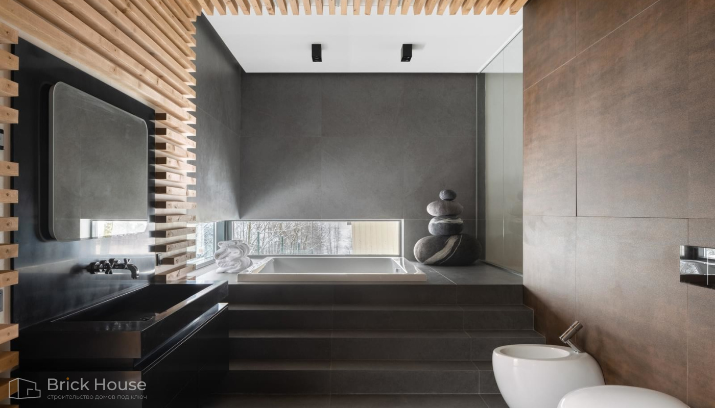 В этом проекте два разных по площади и высоте дома (главный и гостевой) органично вписаны в существующий природный ландшафт. За счёт сильного ступенчатого рельефа со средним перепадом высот в 3-3,5 метра одноэтажные объёмы зданий врезаны в существующий склон один над другим.