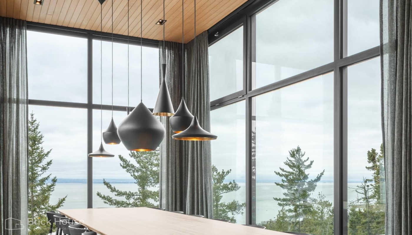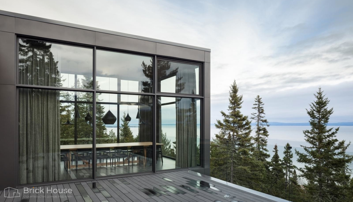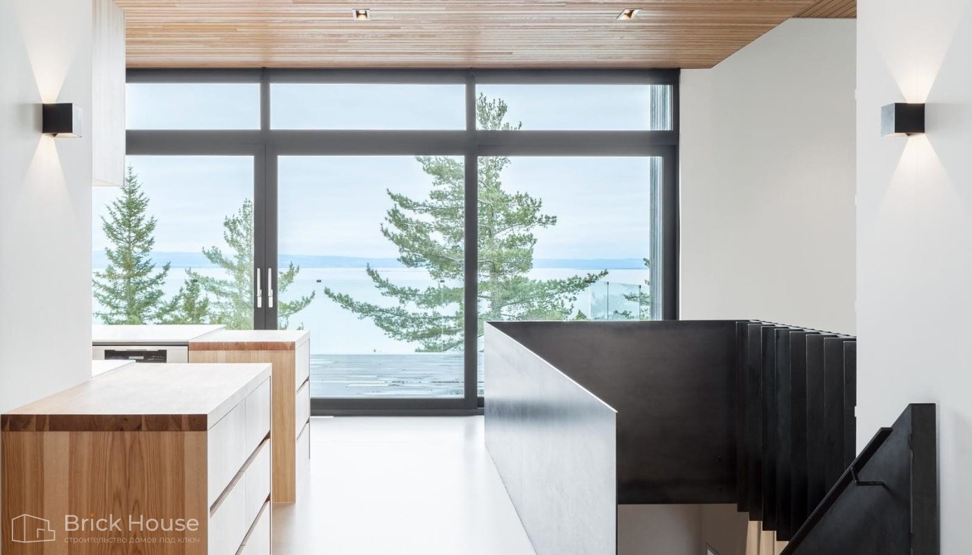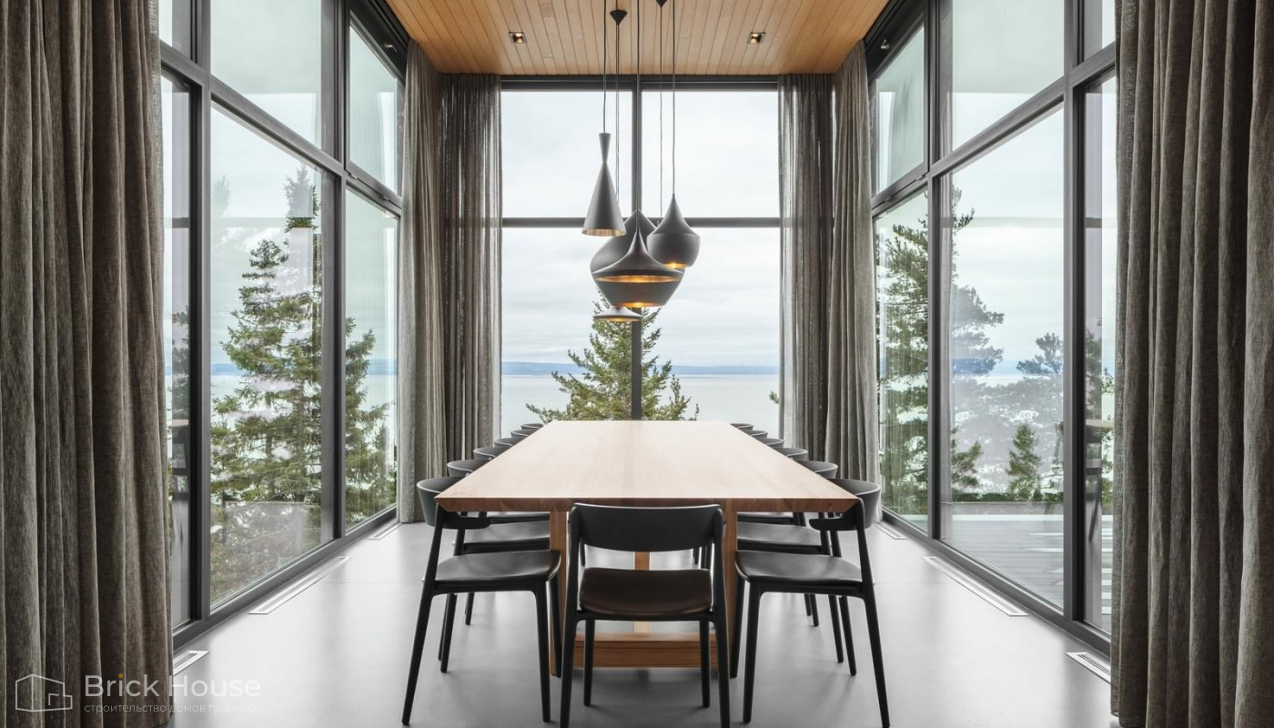 • Панорамные окна позволяют максимально использовать естественное освещение в доме. Они создают светлое и просторное ощущение внутри помещений, позволяют проникать большому количеству дневного света и снижают зависимость от искусственного освещения. Это помогает создать более комфортную и приятную атмосферу