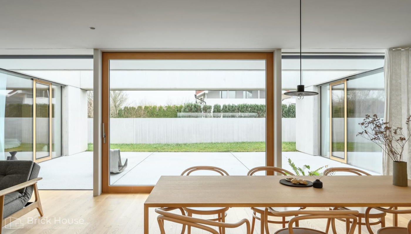 • Панорамные окна позволяют максимально использовать естественное освещение в доме. Они создают светлое и просторное ощущение внутри помещений, позволяют проникать большому количеству дневного света и снижают зависимость от искусственного освещения. Это помогает создать более комфортную и приятную атмосферу