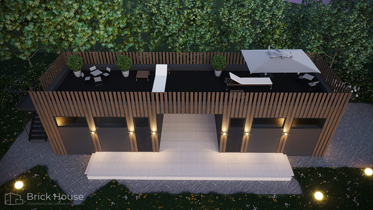 Дома с плоской крышей характерны для стиля хай-тек. Эксплуатируемую плоскую кровлю можно использовать как террасу.