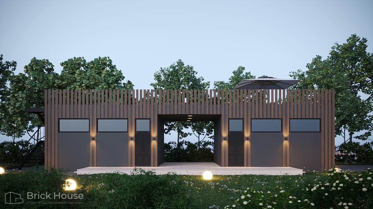 Этот дом имеет один этаж — это позволят быстрее и проще его построить.
