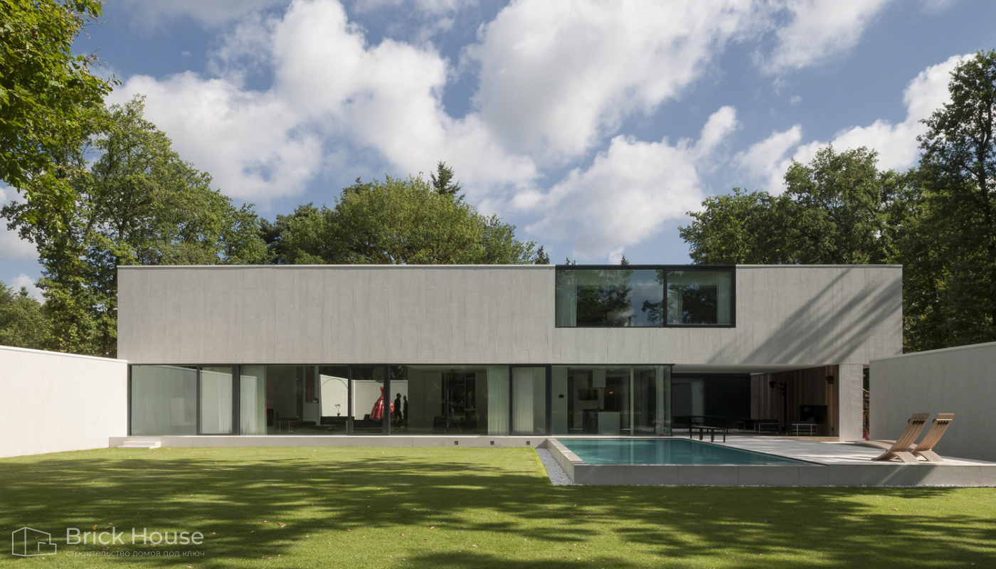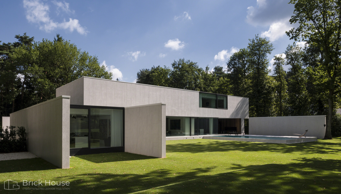Дома в стиле хай-тек имеют плоскую крышу и большую площадь панорамного остекления. Хай-тек в загородной архитектуре набирает все большую популярность. Такие дома смотрятся дорого, современно и презентабельно.