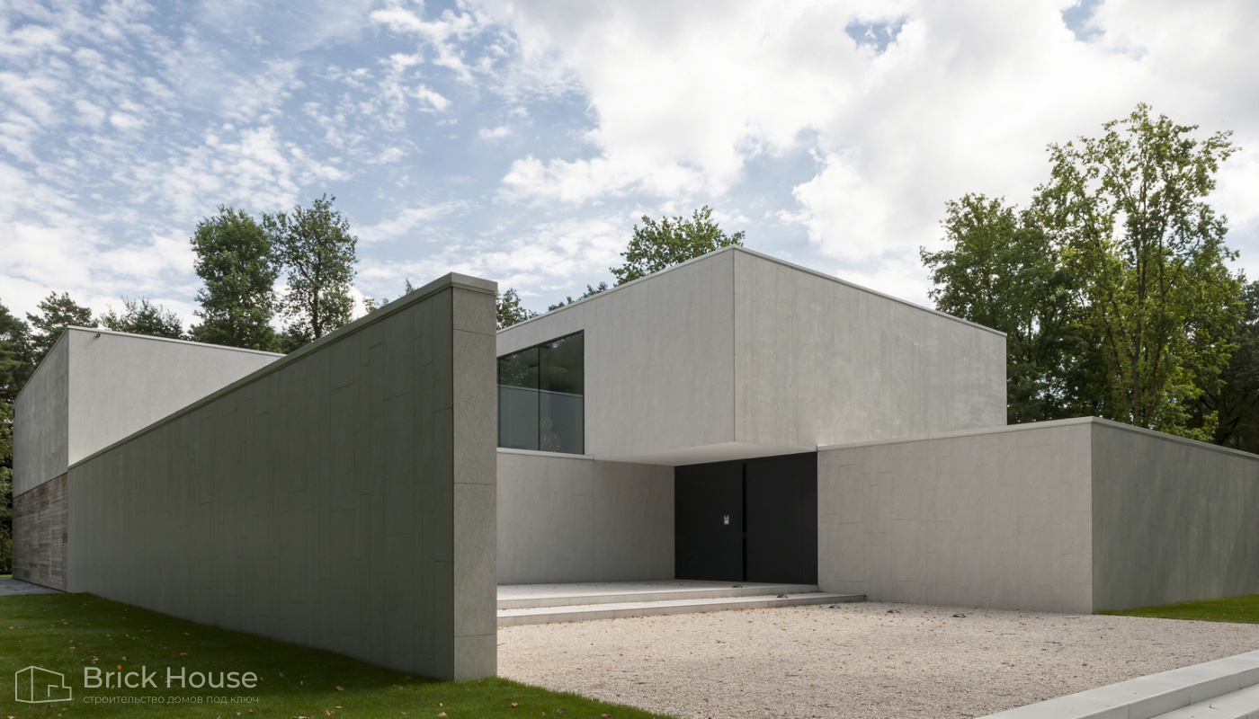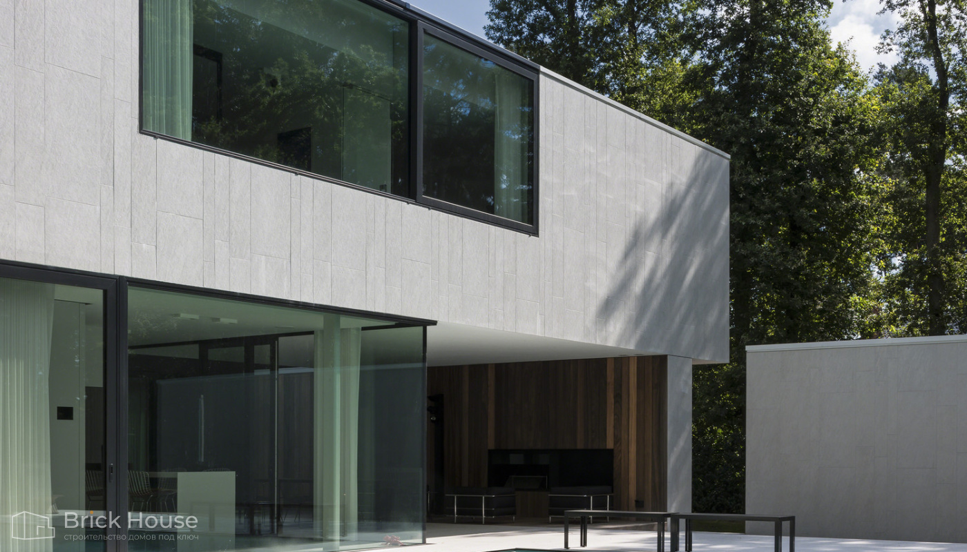 Дома с плоской крышей характерны для стиля хай-тек. Эксплуатируемую плоскую кровлю можно использовать как террасу.
