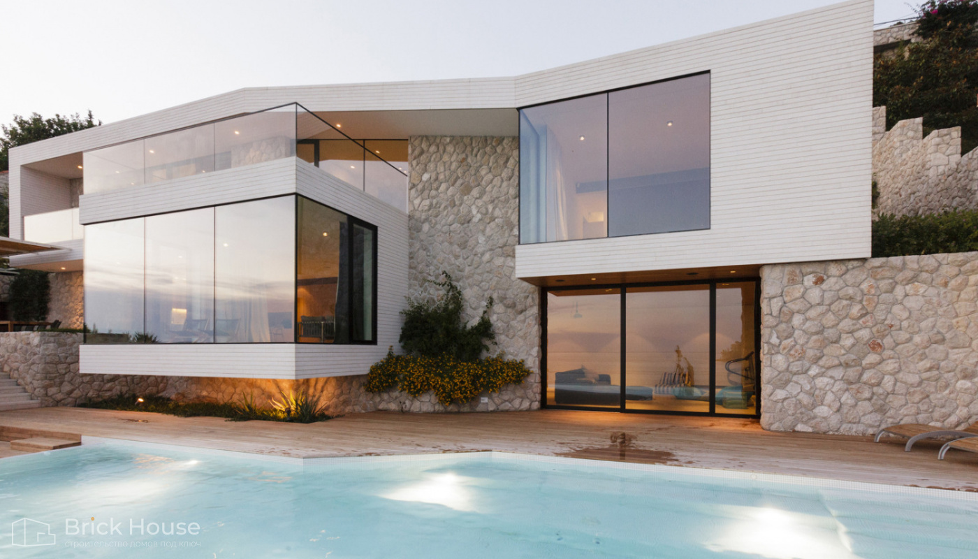 Дом в стиле модерн выглядит стильно и дорого.