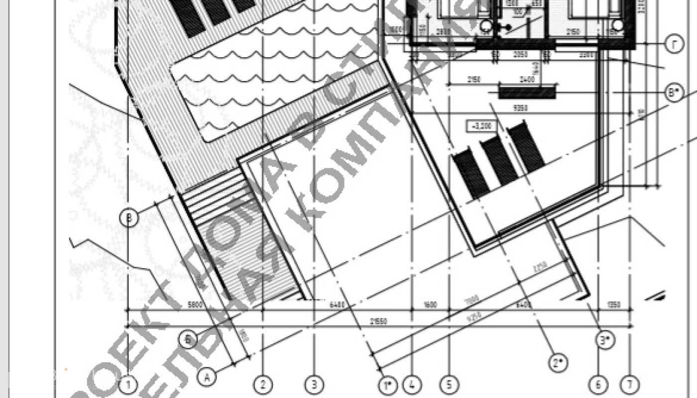 Размеры дома составляют 21,55 на 17,50 метров.