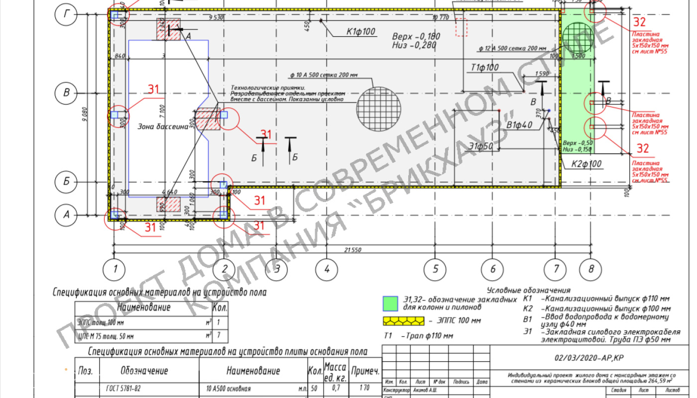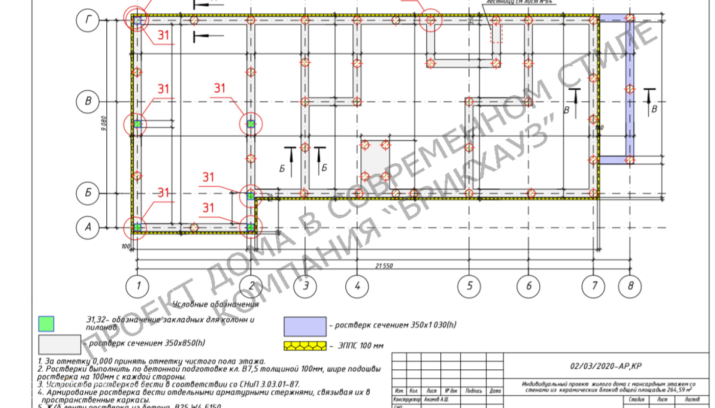 Размеры дома составляют 21,55 на 9,08 метров.