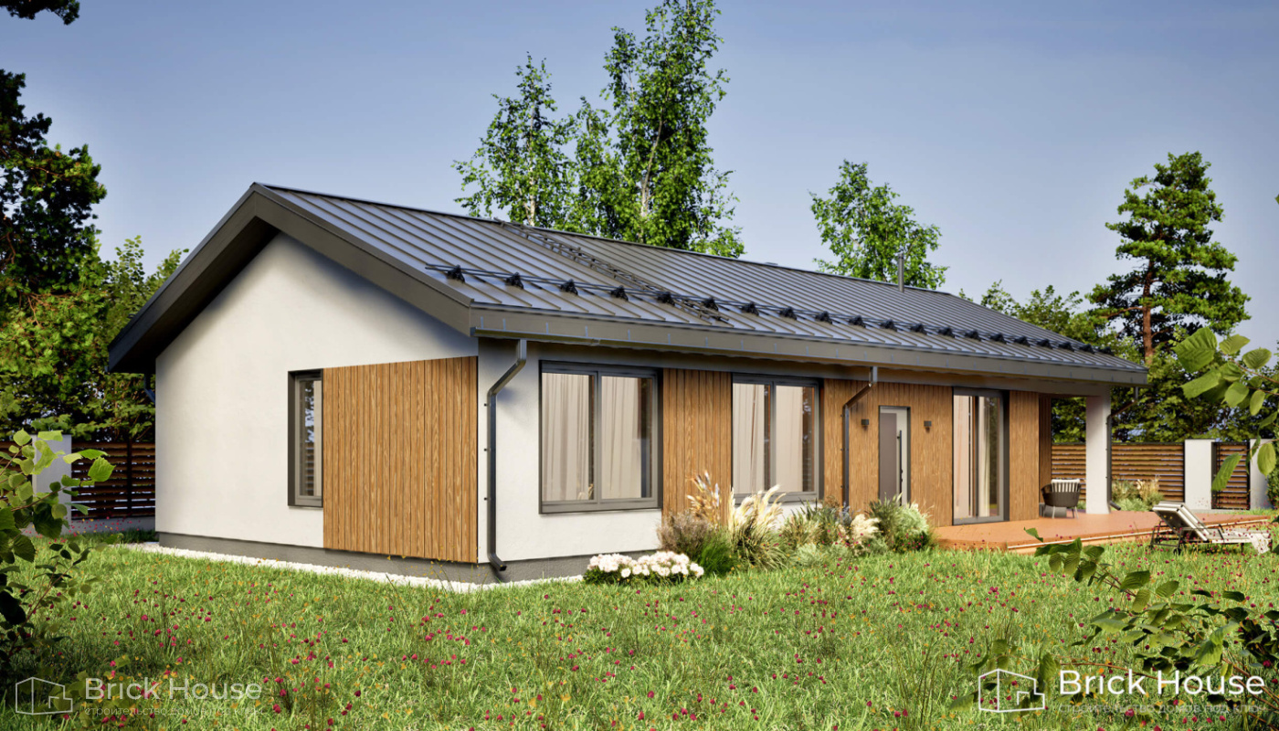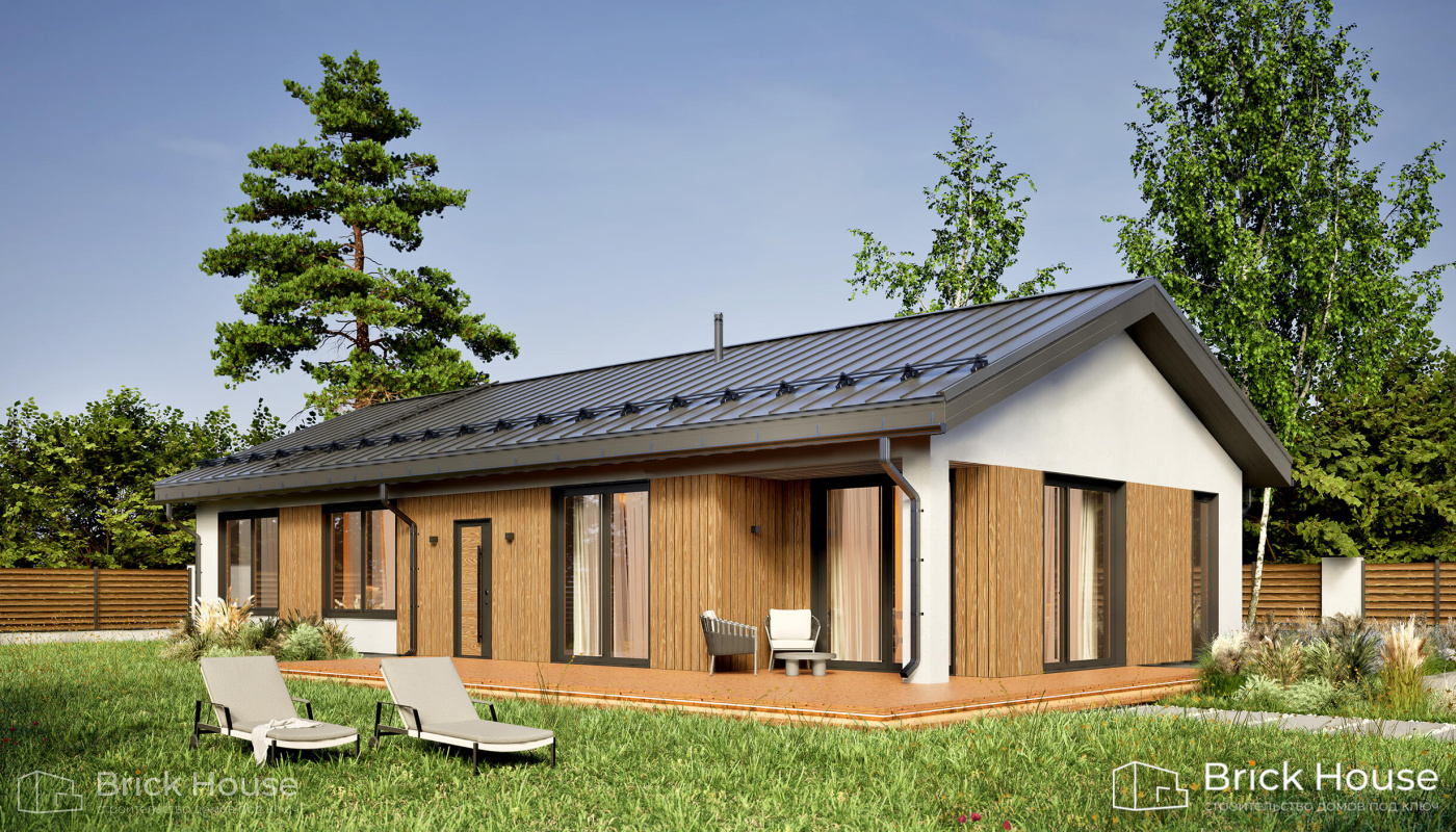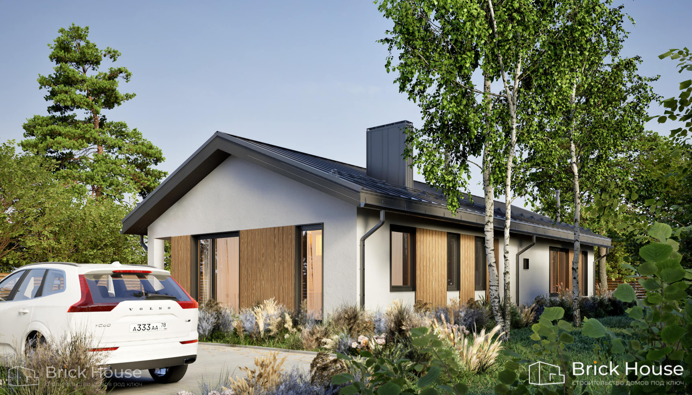 Дома площадью от 100 метров подходят для небольших семей. В их планировках есть все необходимые помещения для комфортного проживания — гостиная, кухня и несколько спален.