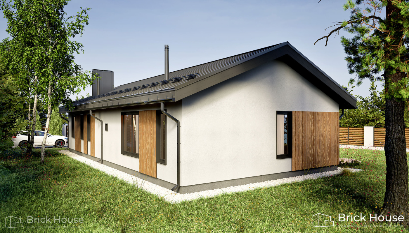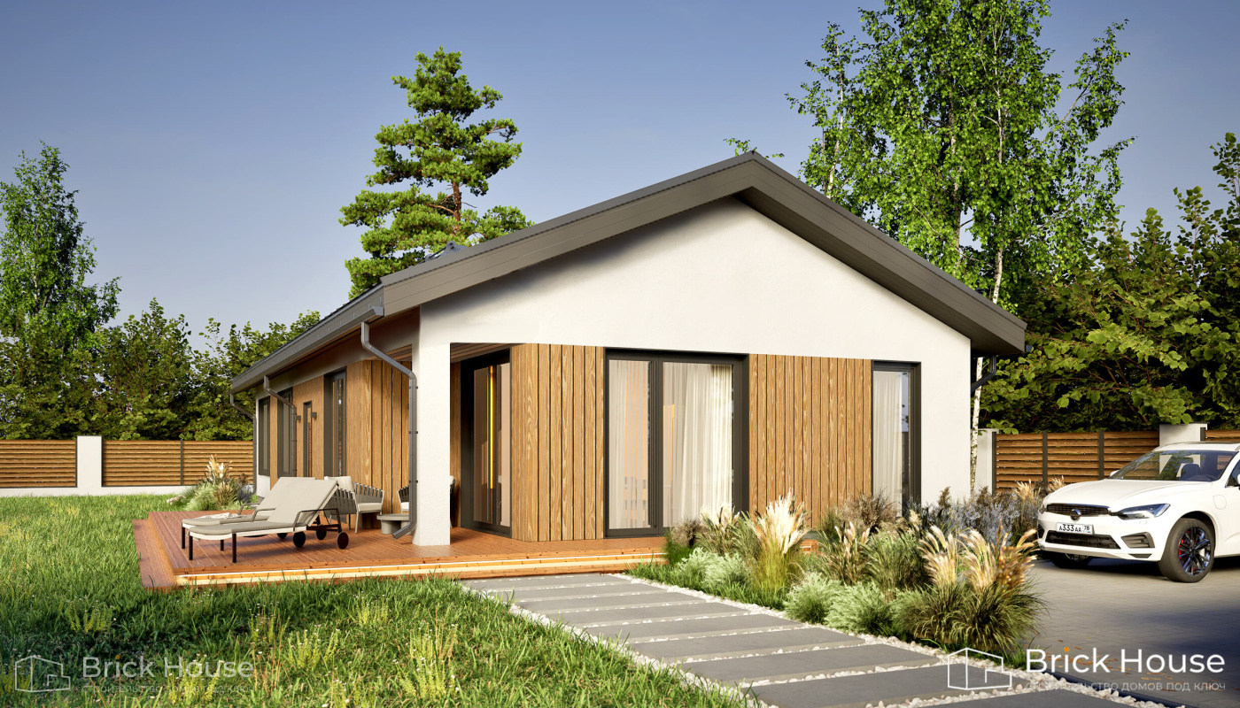 Этот дом имеет один этаж — это позволят быстрее и проще его построить.