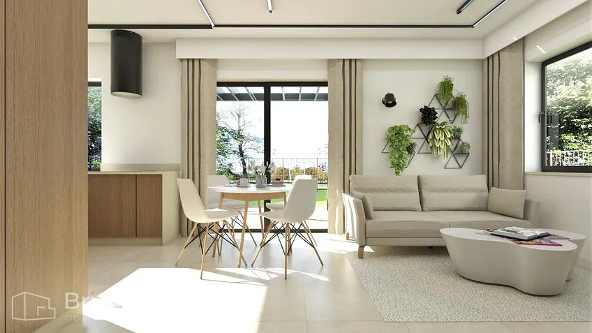 • Дом без гаража предоставляет большую гибкость использования. Вы можете адаптировать это пространство под свои потребности, будь то дополнительная комната для гостей, спортивный зал, рабочий кабинет или студия
