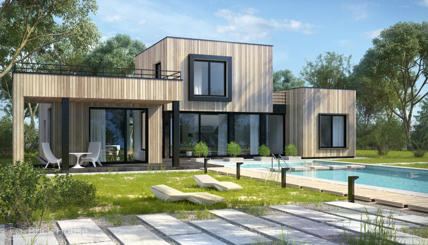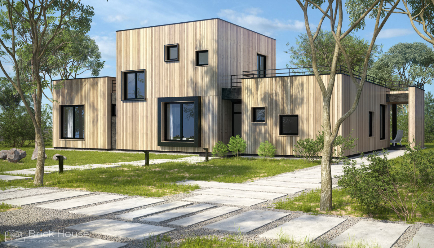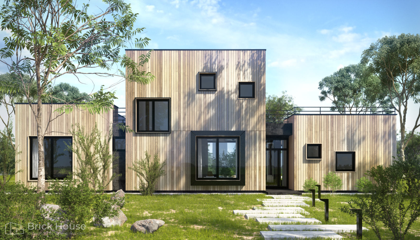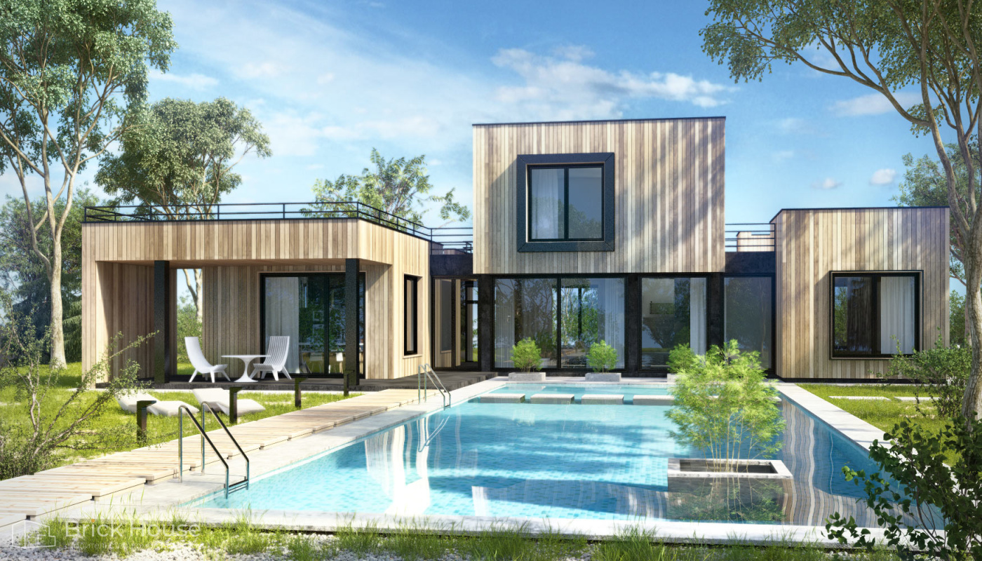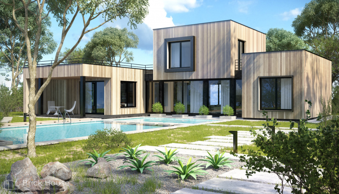Современные дома отличает минимализм и практичные планировочные решения. Для них также характерны панорамное остекление и комбинированные фасады.