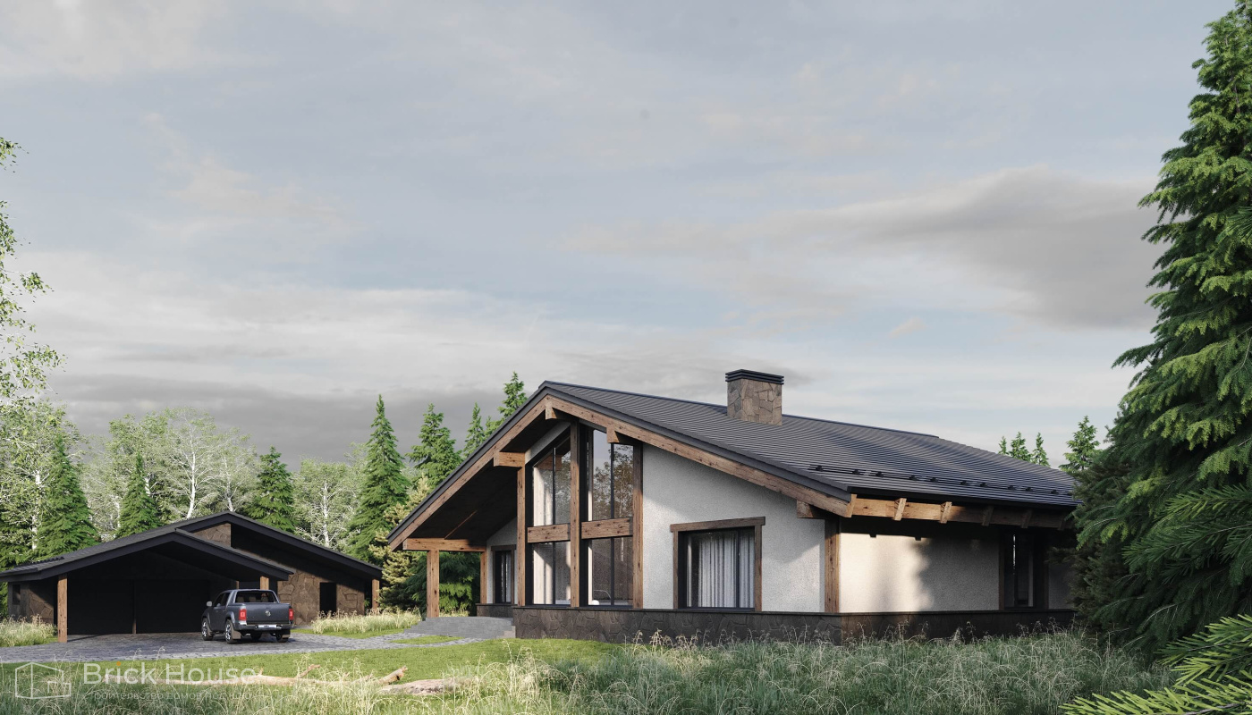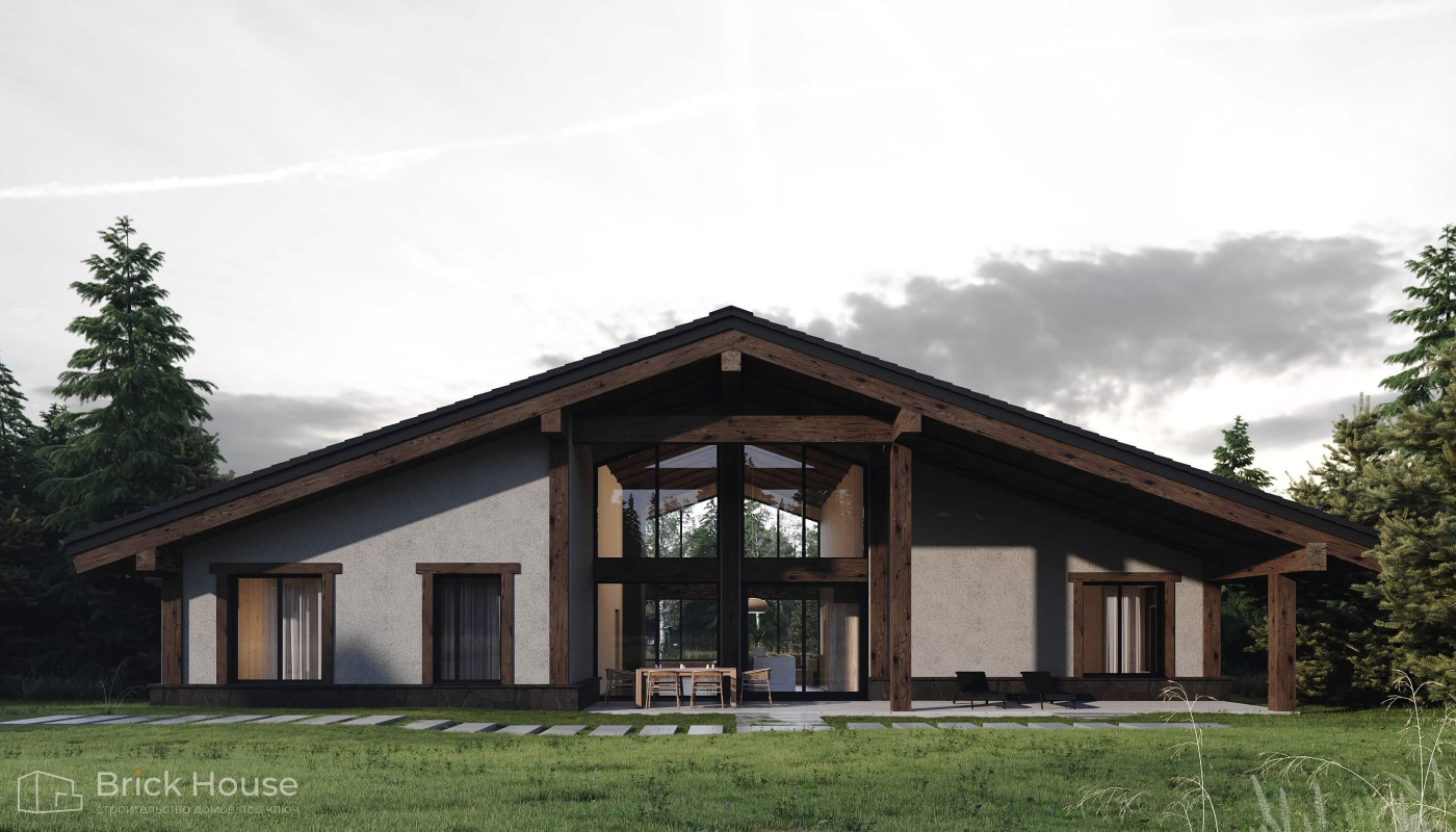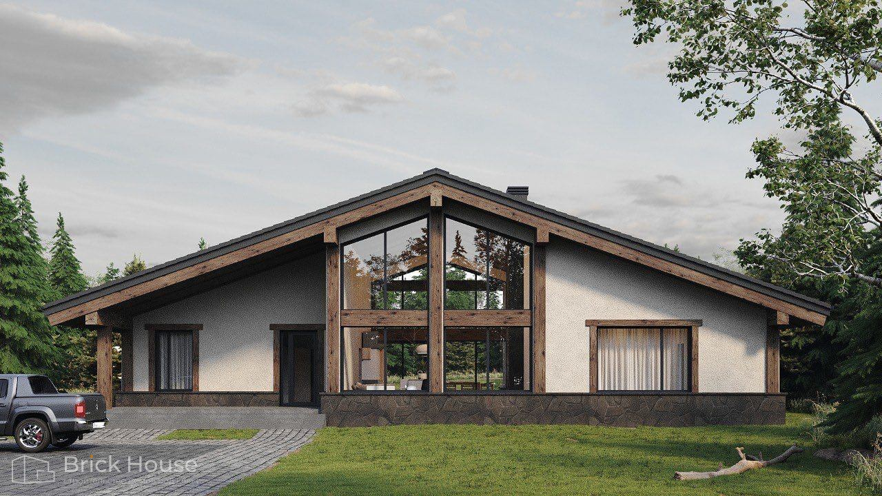 Этот дом имеет один этаж — это позволят быстрее и проще его построить.