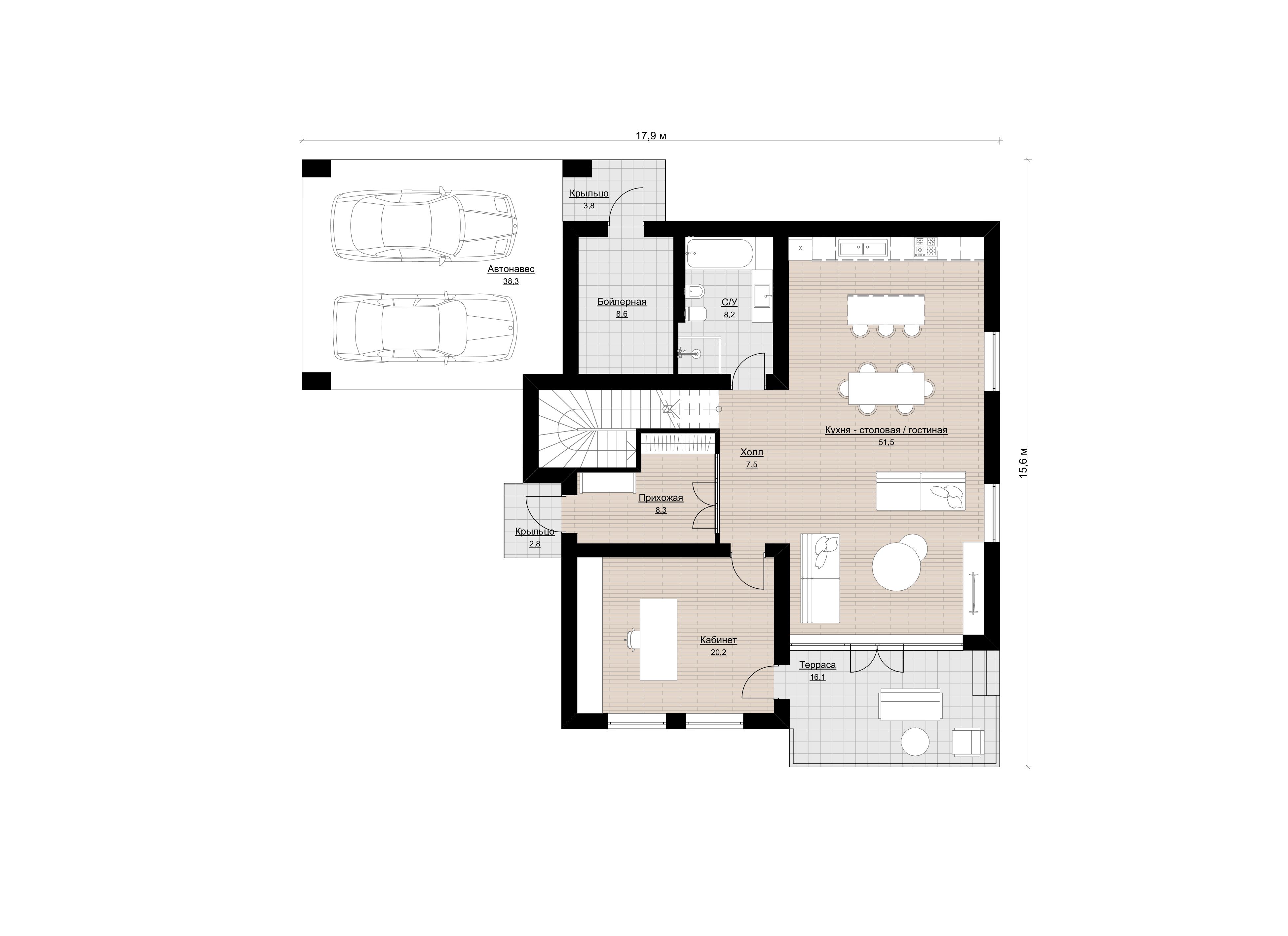 Дом без гаража предоставляет большую гибкость использования. Вы можете адаптировать это пространство под свои потребности, будь то дополнительная комната для гостей, спортивный зал, рабочий кабинет или студия.