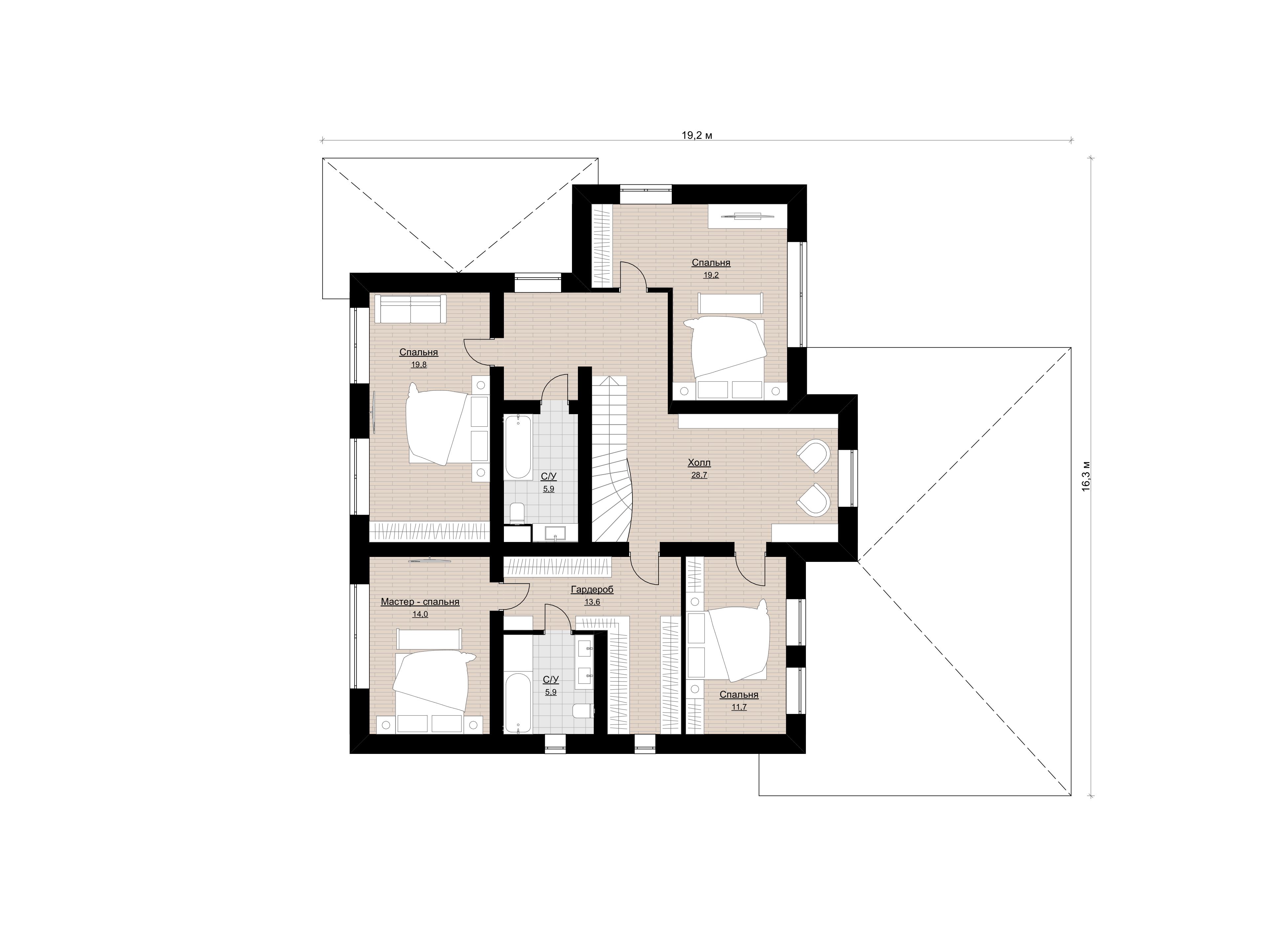 • Проекты домов 200 – 300 кв. м создаются для комфортного проживания больших семей