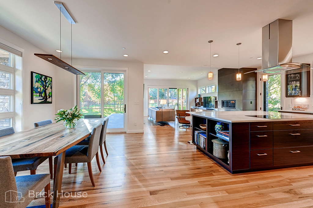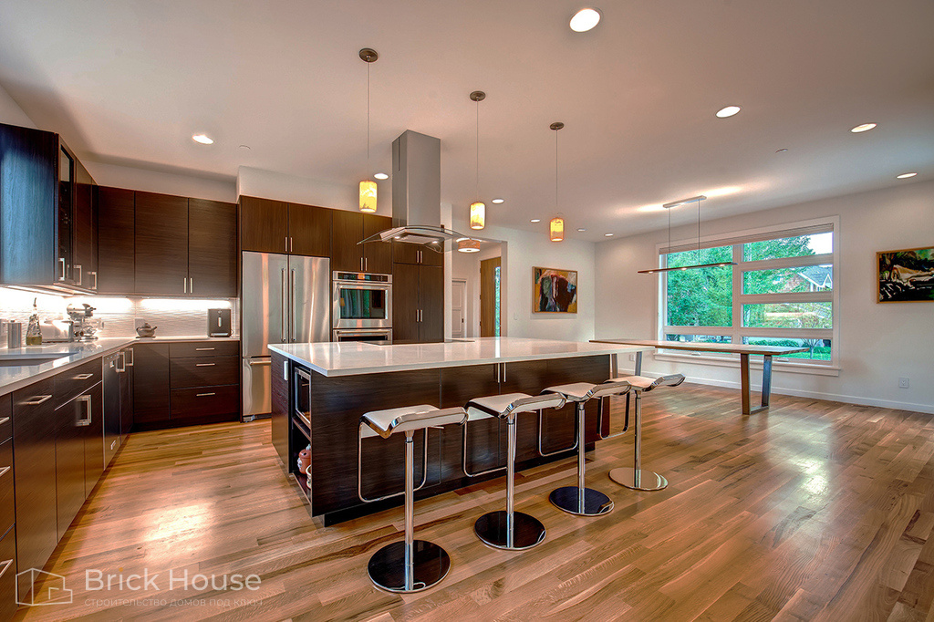В доме большой площади можно реализовать любые идеи для комфортной и красивой жизни. В таком доме будет удобно жить даже семье, состоящей из нескольких поколений.