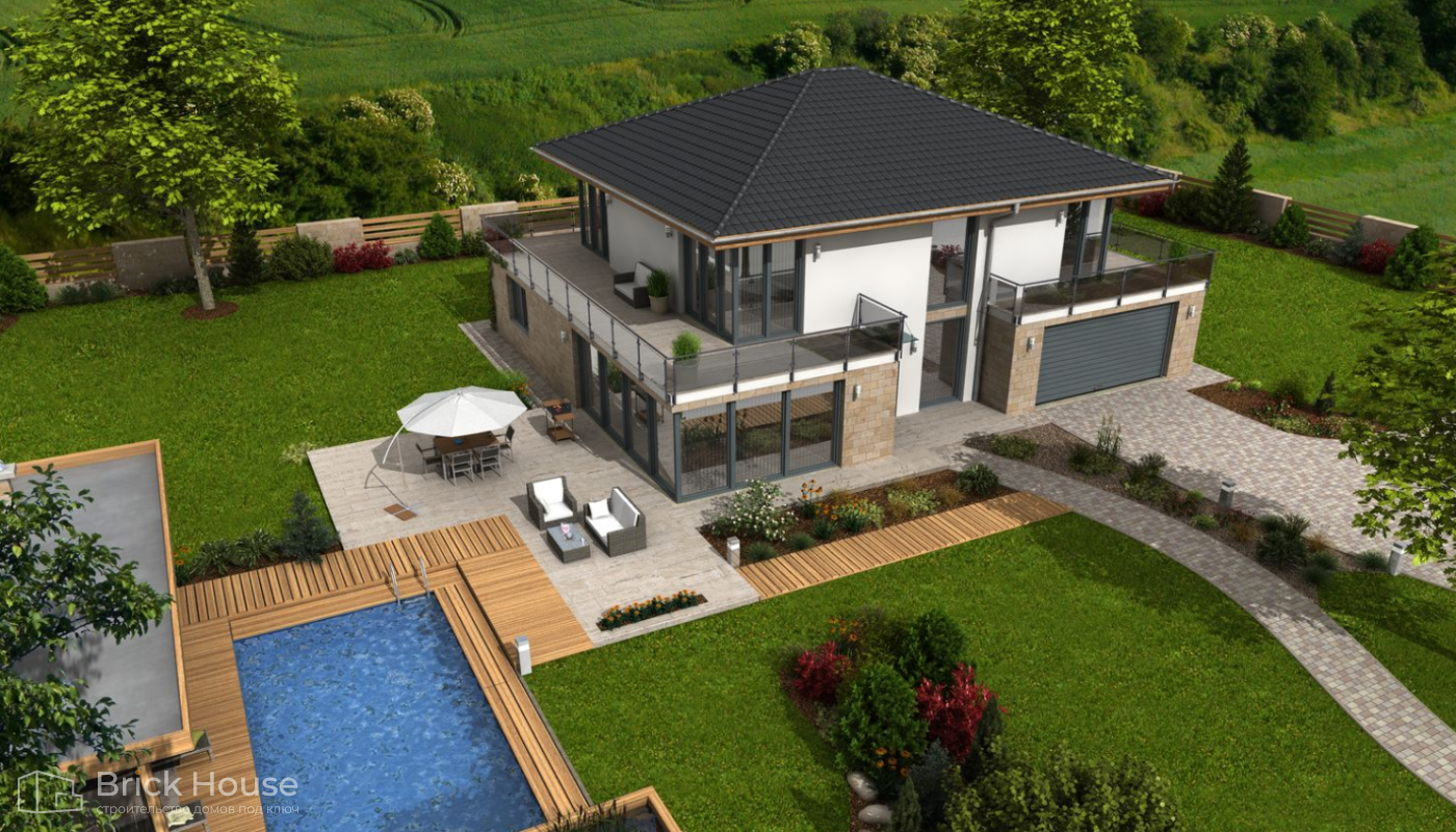 В доме большой площади можно реализовать любые идеи для комфортной и красивой жизни. В таком доме будет удобно жить даже семье, состоящей из нескольких поколений.